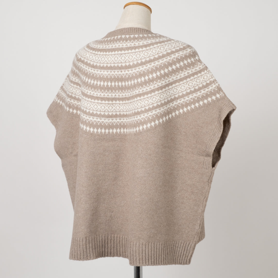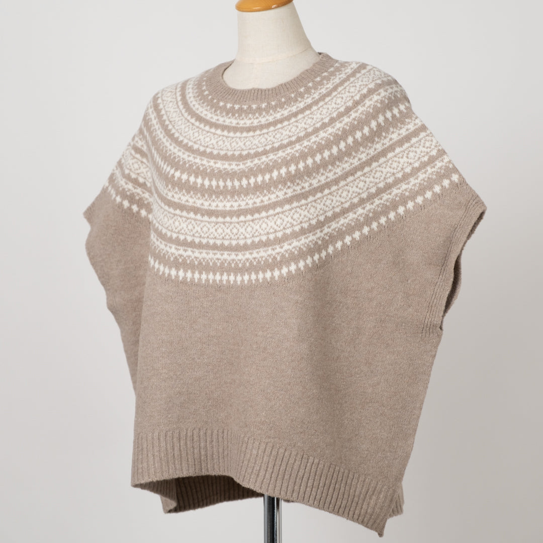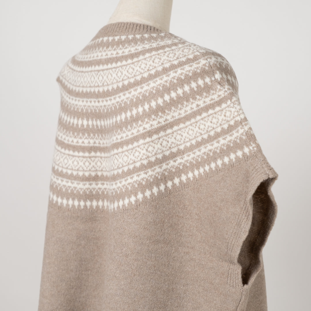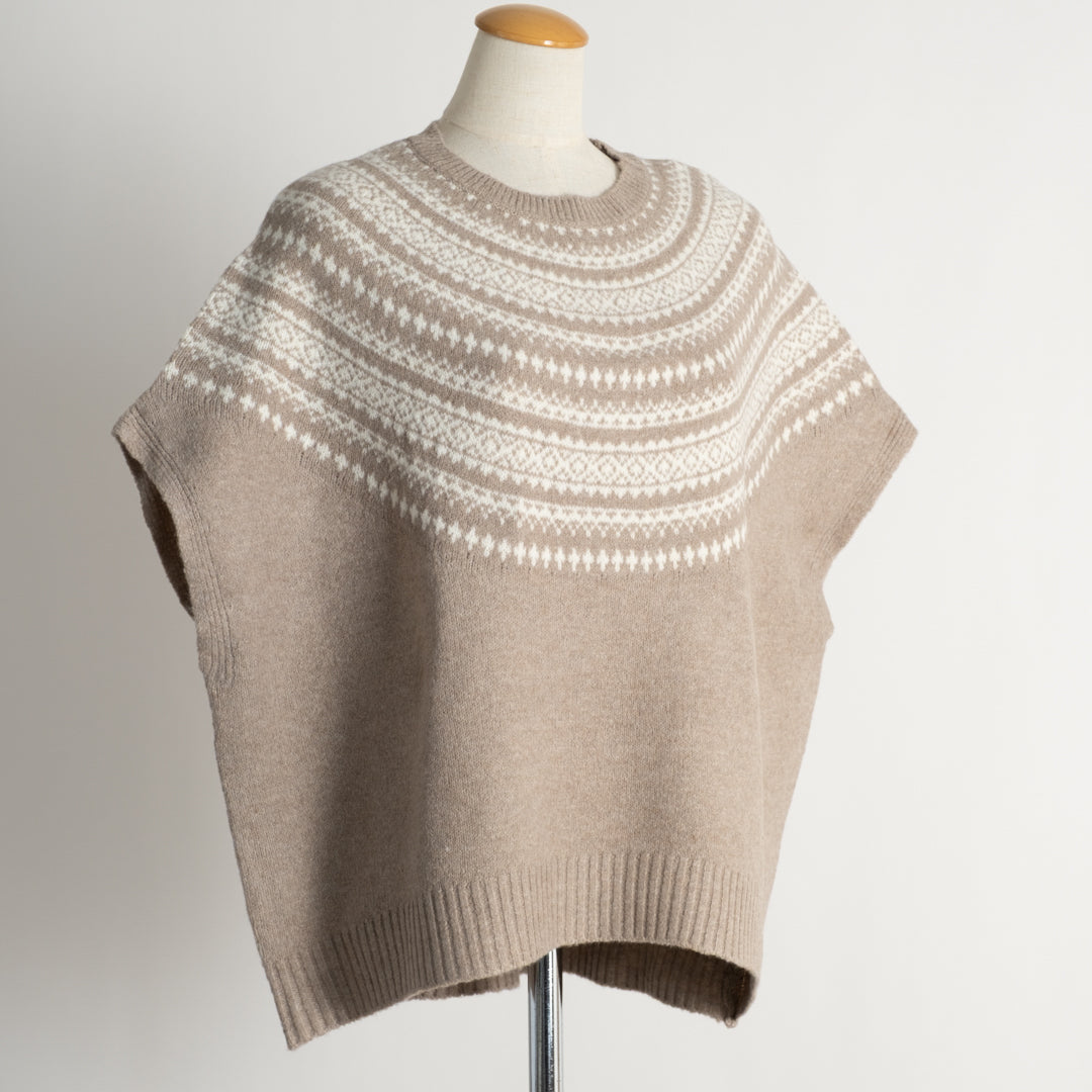 幾何学的な求心柄が視線を集める、洗練されたベスト。シンプルなシルエットに、動きのあるパターンが奥行きと立体感をプラス。上質素材と緻密な配置で、カジュアルからセミフォーマルまで対応する汎用性の高い一着です。