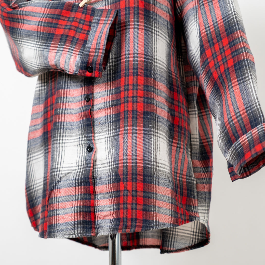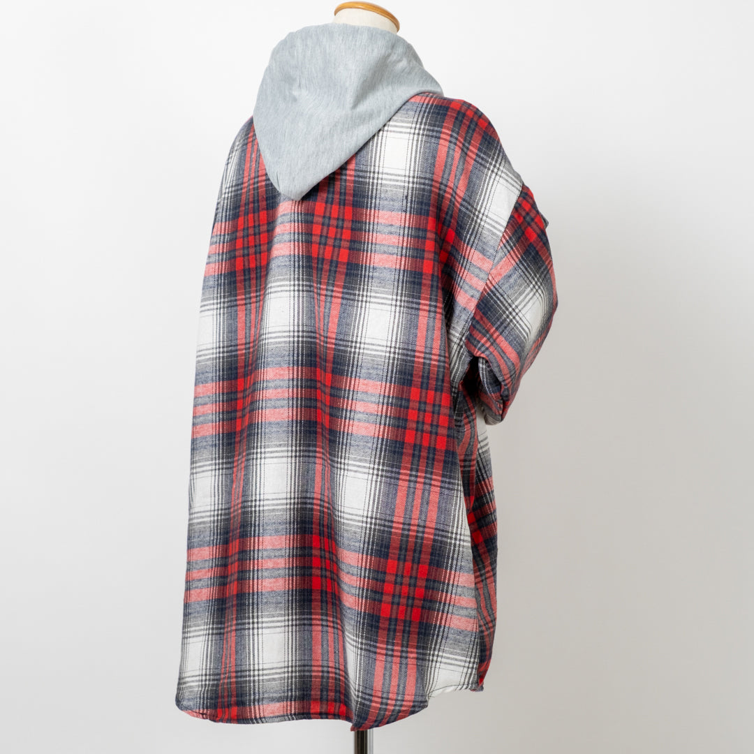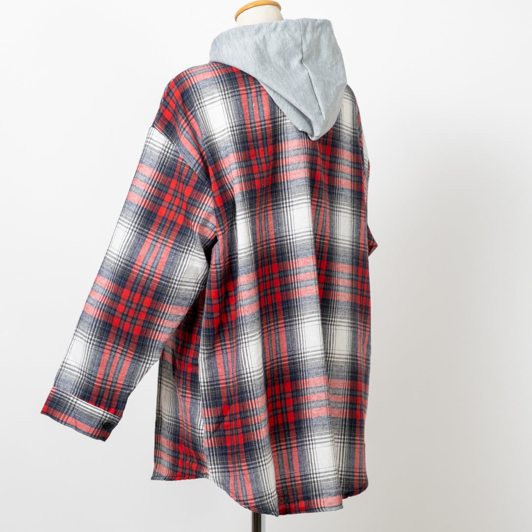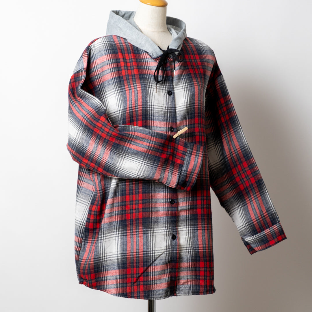 柔らかな肌触りと、一日中着ていても疲れない快適な着用感を追求した素材を使用。長袖デザインでありながら軽やかで、気温の変化が激しい時期の体温調節に最適です。最大の魅力は、デザイン性と機能性を兼ね備えたフード付きスタイル。急な小雨や肌寒さに対応できるだけでなく、顔周りに立体感と抜け感を演出し、小顔効果も期待できます。