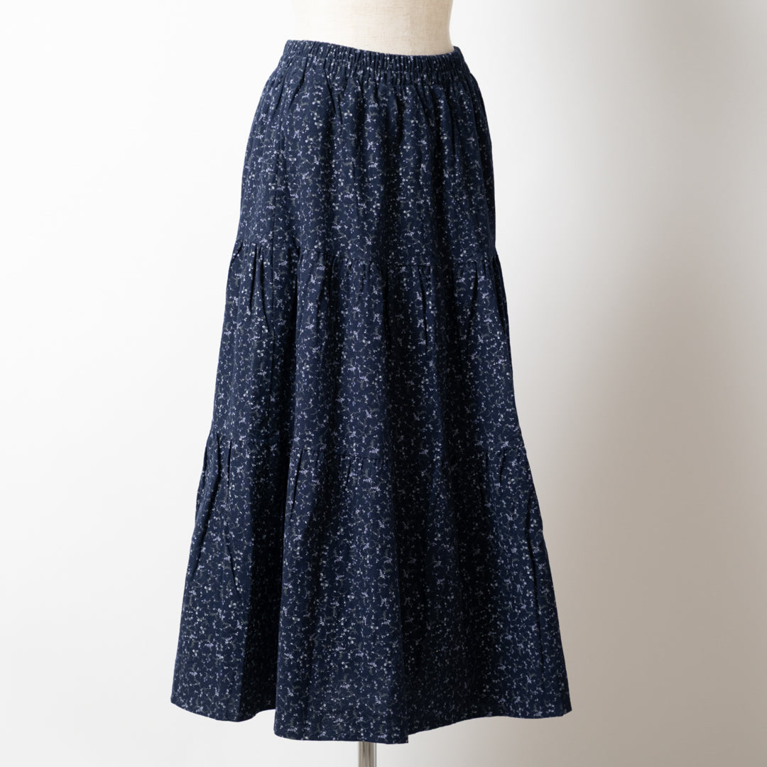 こちらの小花柄ミドルスカートは、大人女性のワードローブに華やかさと上品さを添える万能スカートです。柔らかな小花柄が全面に上品に広がるデザインで、フェミニンでありながらも落ち着いた印象を与えます。程よい丈感は、足をきれいに見せつつも動きやすく、幅広いシーンに対応します。