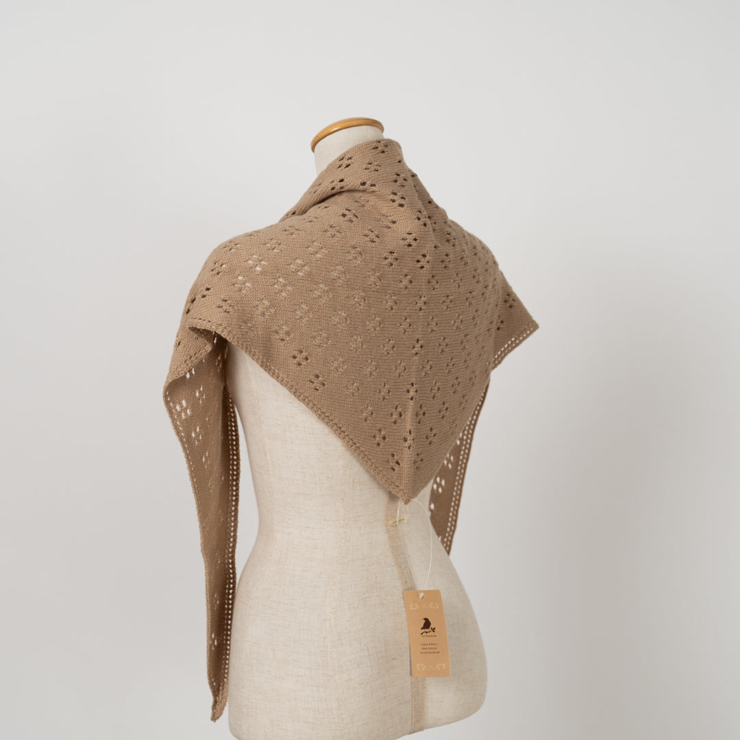 肌寒くなってきた午後のひと時、暖炉のそばで過ごすような心地よさを提供する三角スカーフです。肩にかけたり首に巻いたり胸元で結ぶスタイルなど様々な巻き方でコーディネートをお楽しみいただけます。