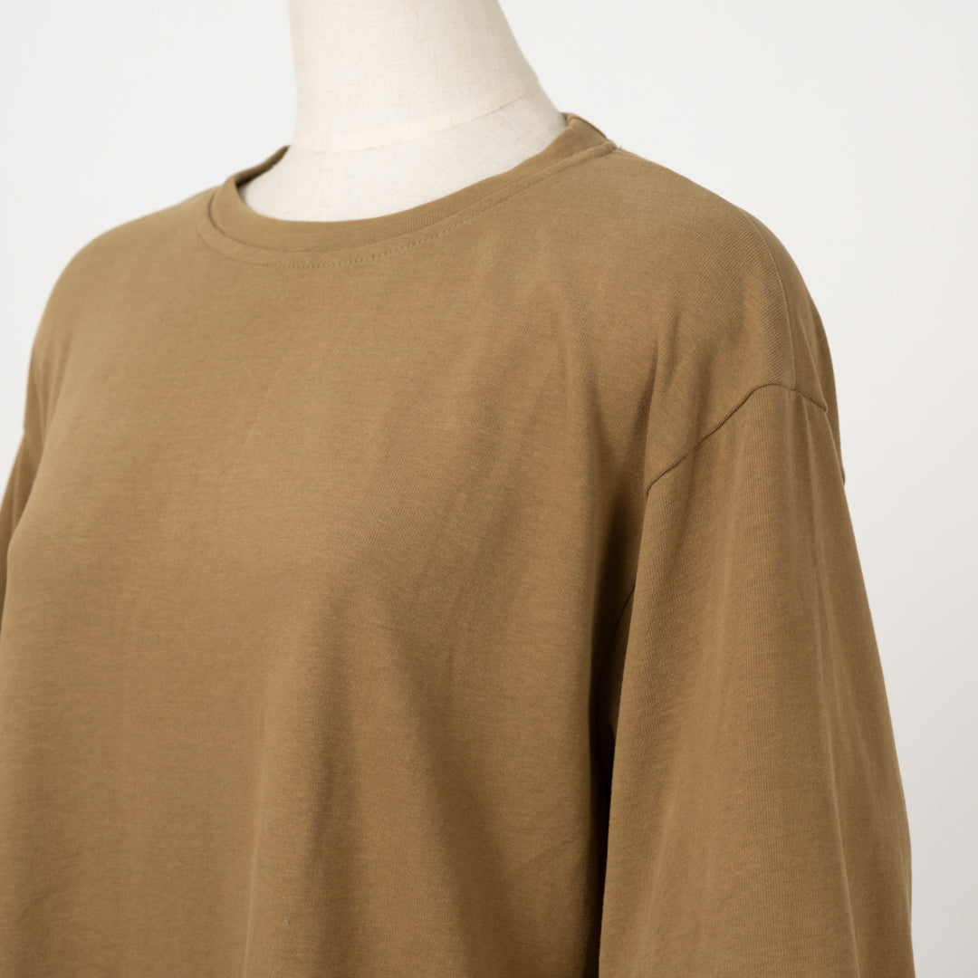 自然の温もりを纏う上質ウェア。深みのある色合いと柔らかな素材感が、大人っぽい雰囲気を演出します。ゆったりシルエットで重ね着にも対応。ヴィンテージを現代的に解釈した、秋冬の日常着に溶け込む一枚です。