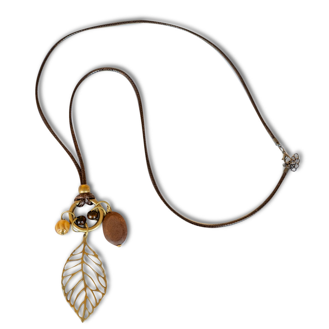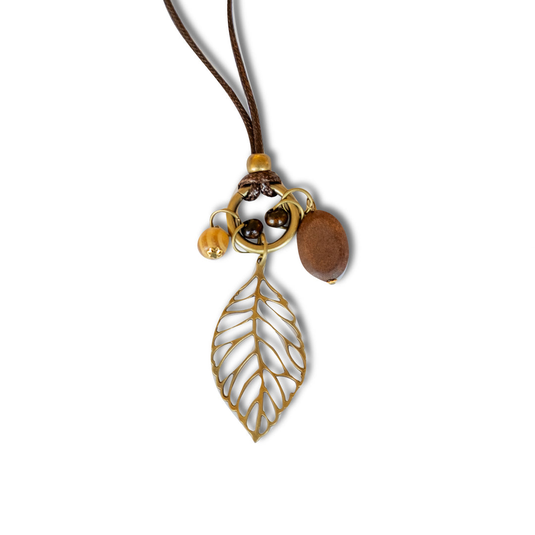 軽やかな透かしデザインのリーフ(葉っぱ)と、コロンとした可愛らしい木の実のパーツを組み合わせ、まるで森の片隅を切り取ったような表情豊かなアクセサリーに仕上げました。