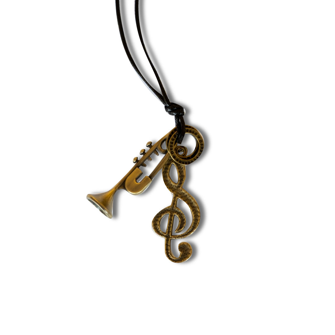 音楽愛する全ての方に、繊細作り込まれたトランペットと、優雅な曲線を描くト音記号を一つチャームに凝縮した、遊び心溢れるネックレスです。