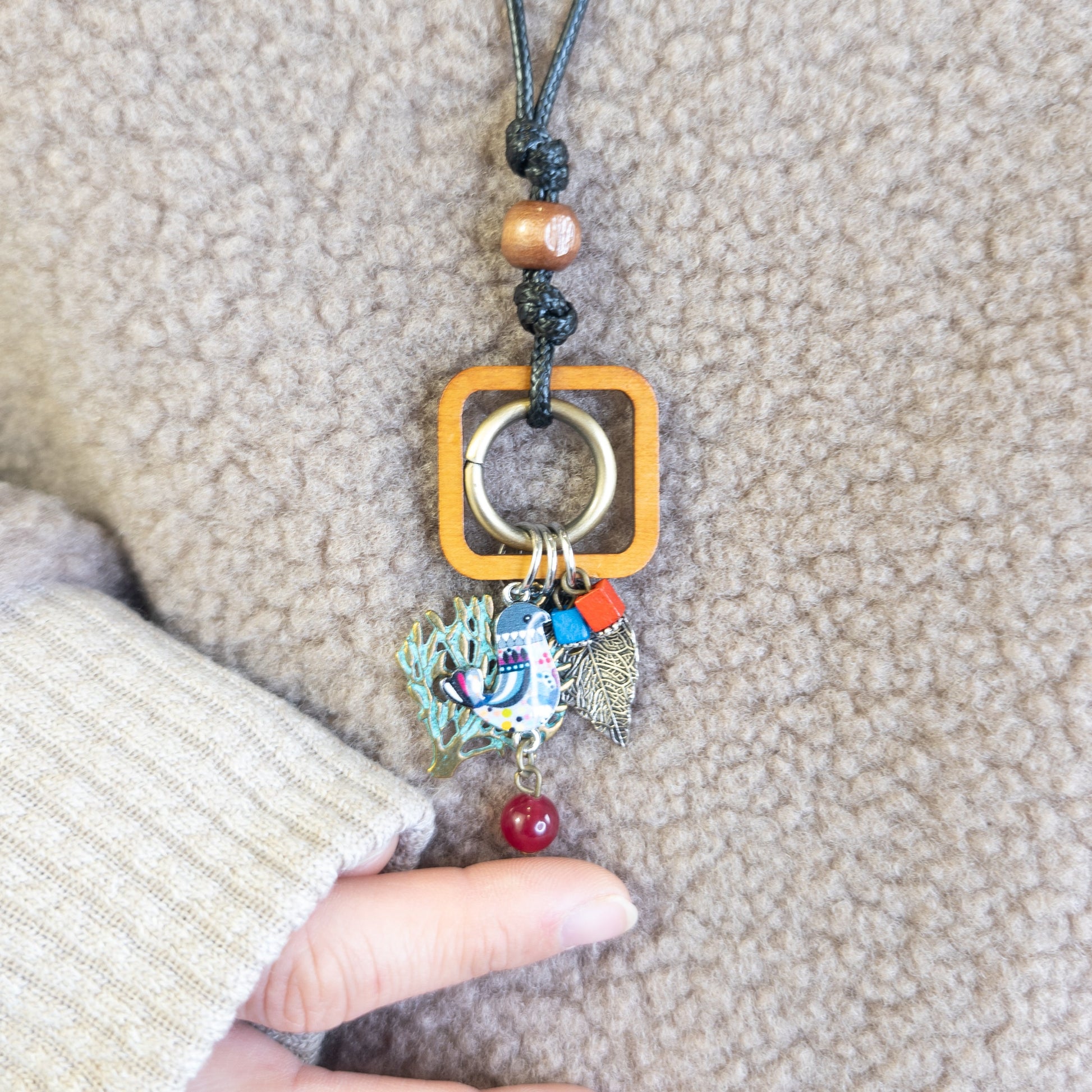 小鳥のウッドペンダント