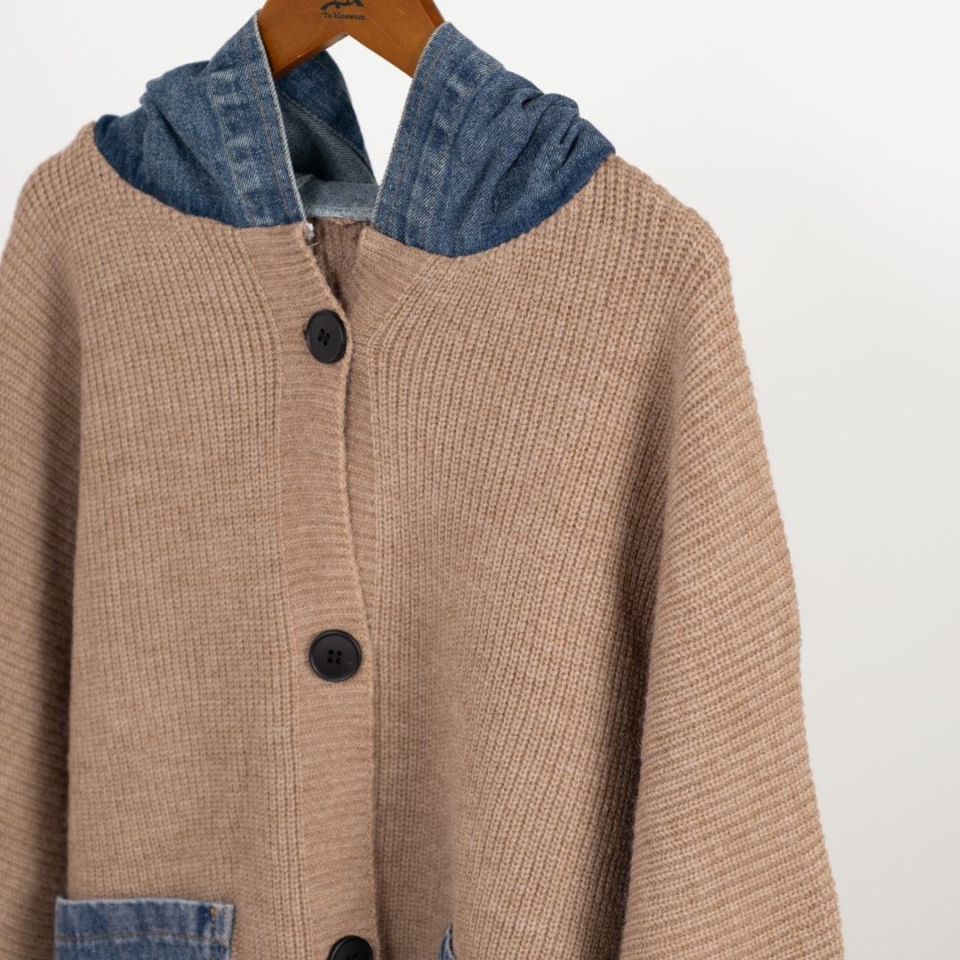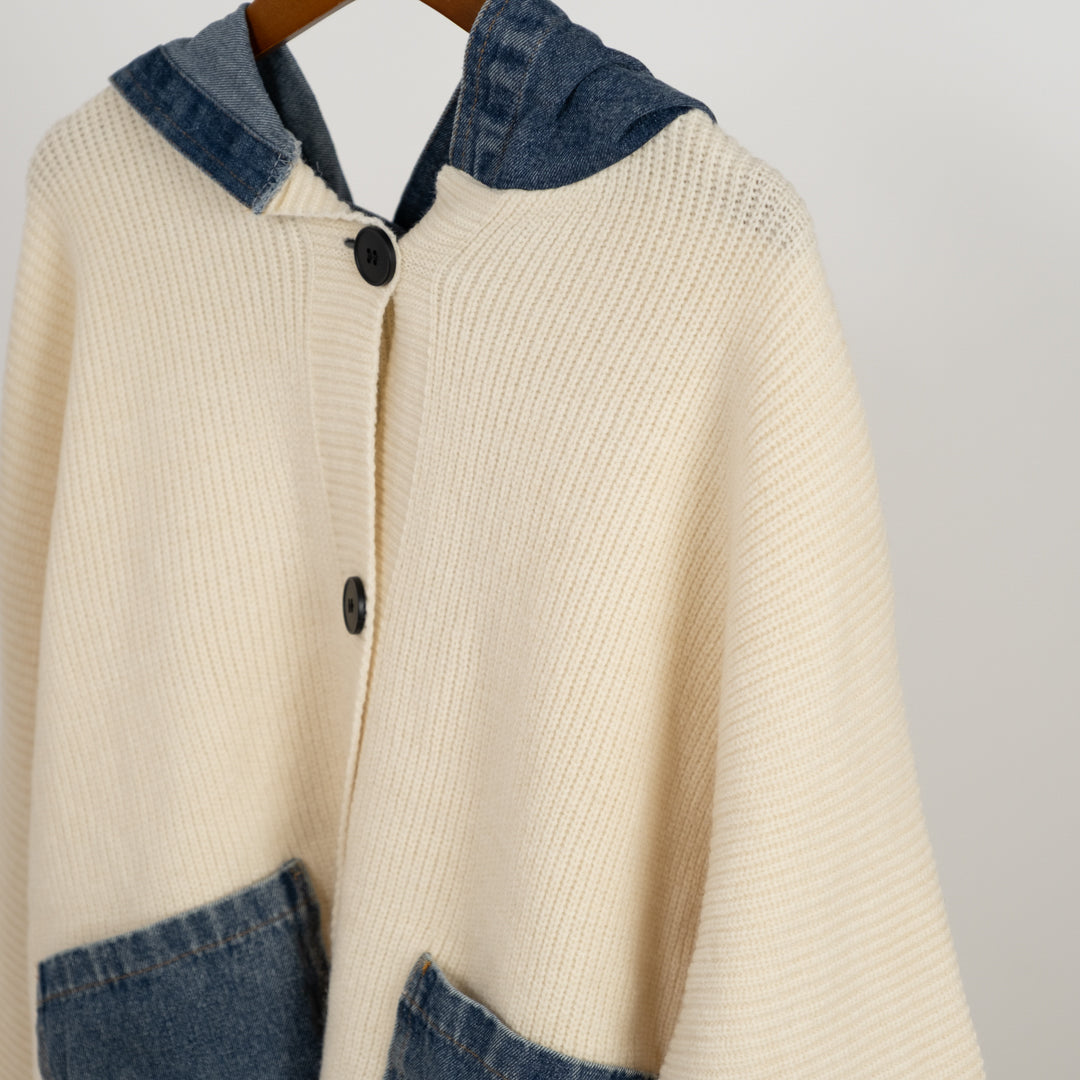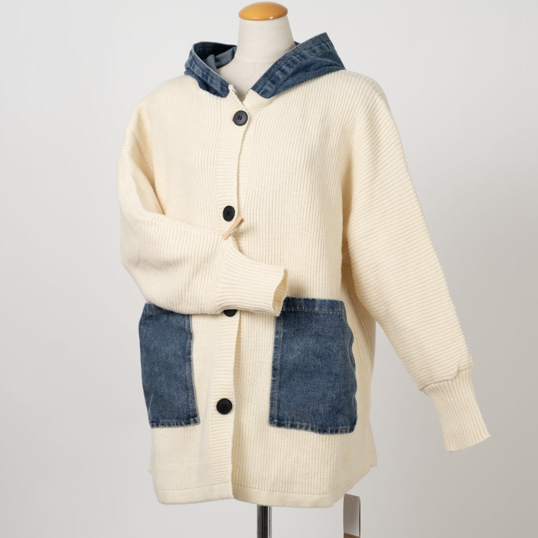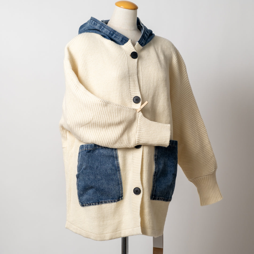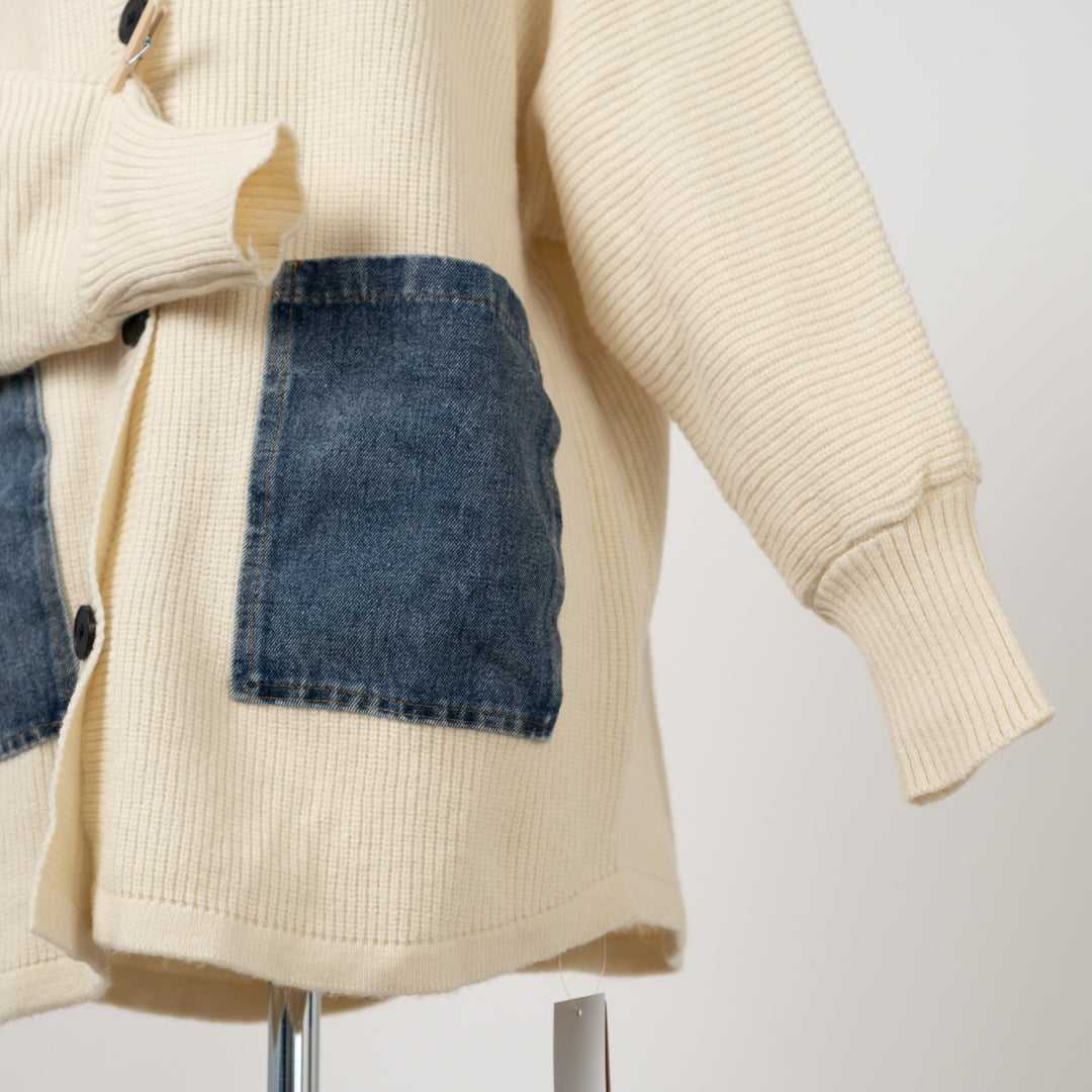 デニムパッチのざっくりカーディガン