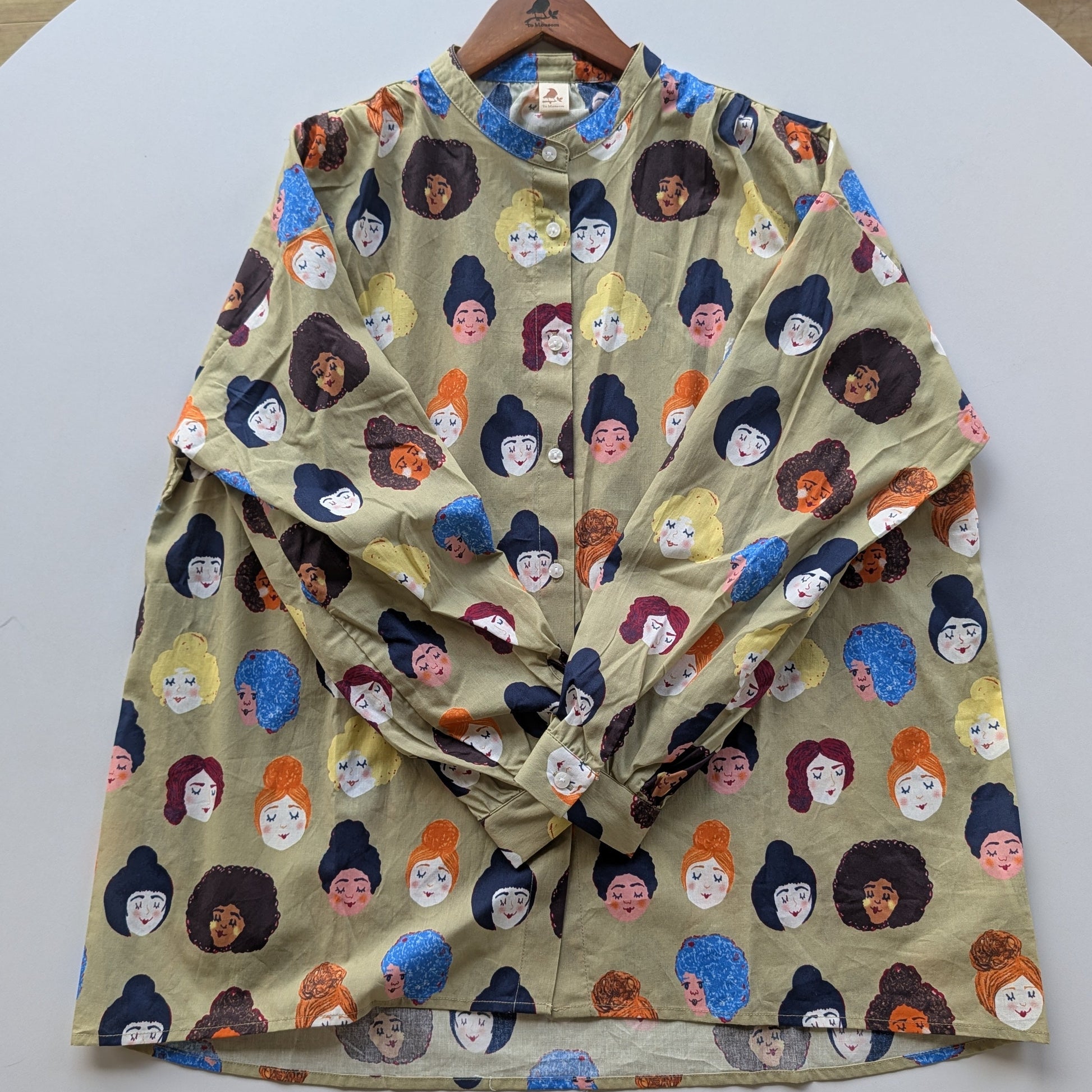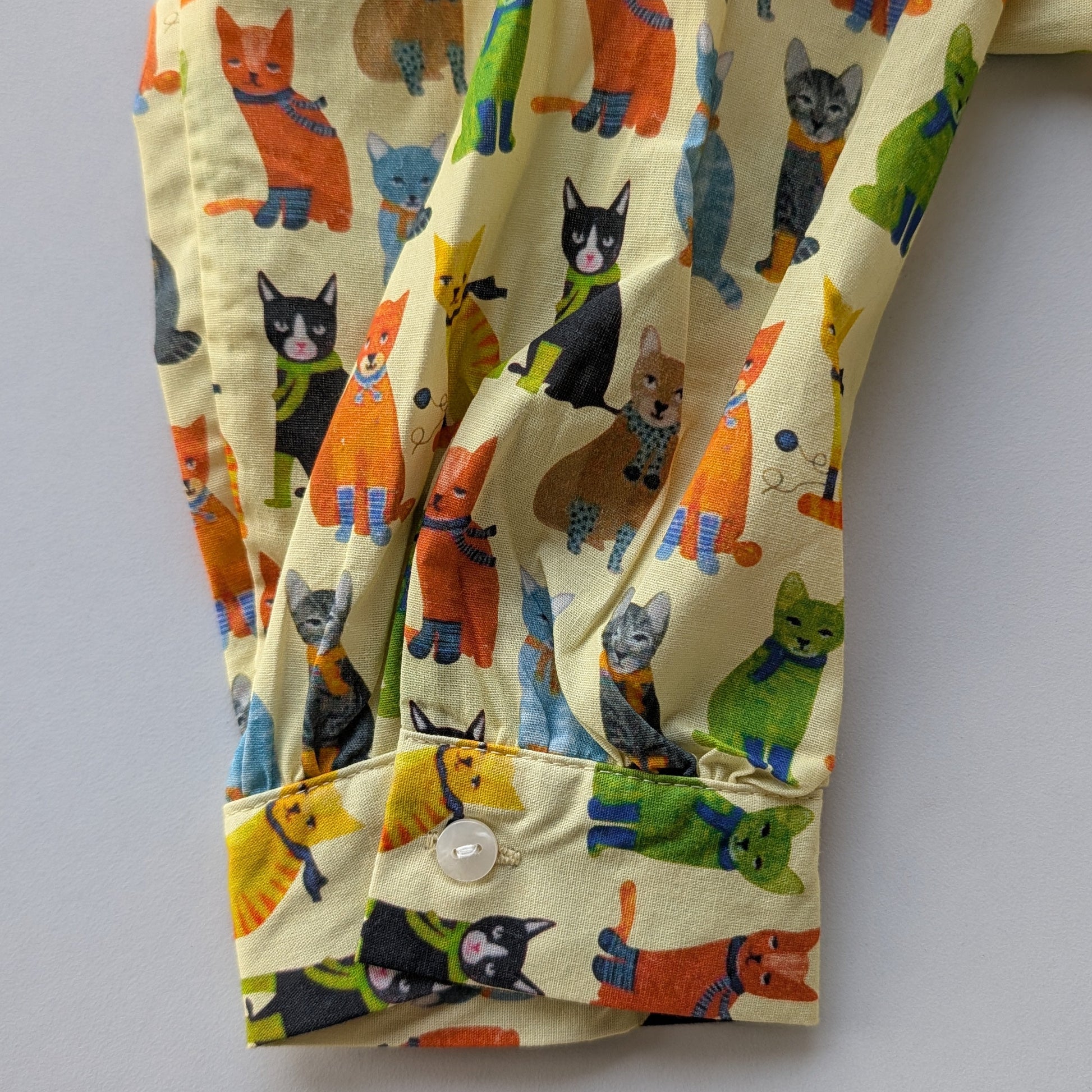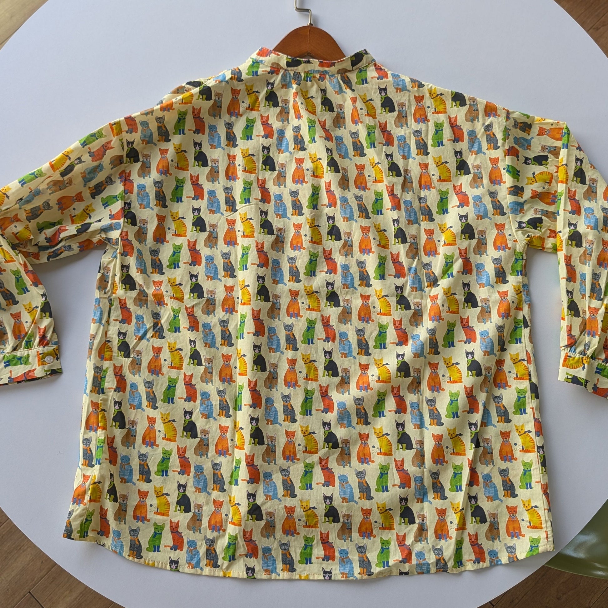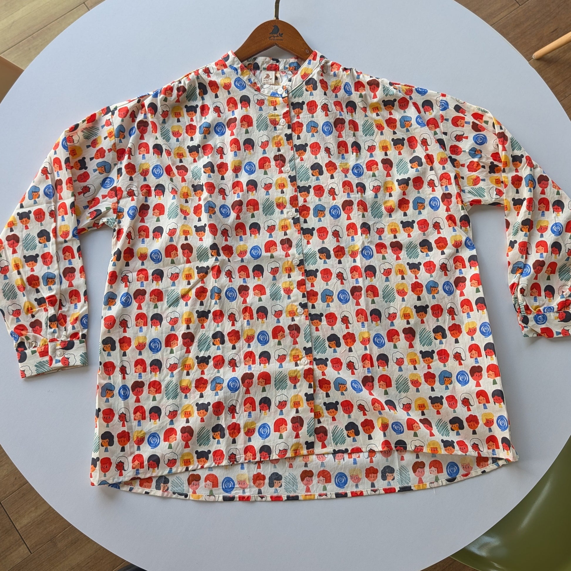 一見すると華やかな総柄、よく見ると愛らしい「顔」や「猫」たちが顔を出す、遊び心満載のブラウスが登場しました。肩に施したギャザーが、女性らしくふんわりとした立体感を演出。顔周りを華やかに見せてくれます。