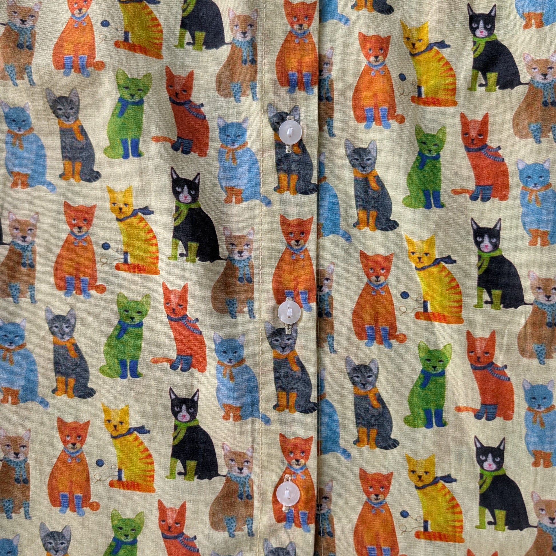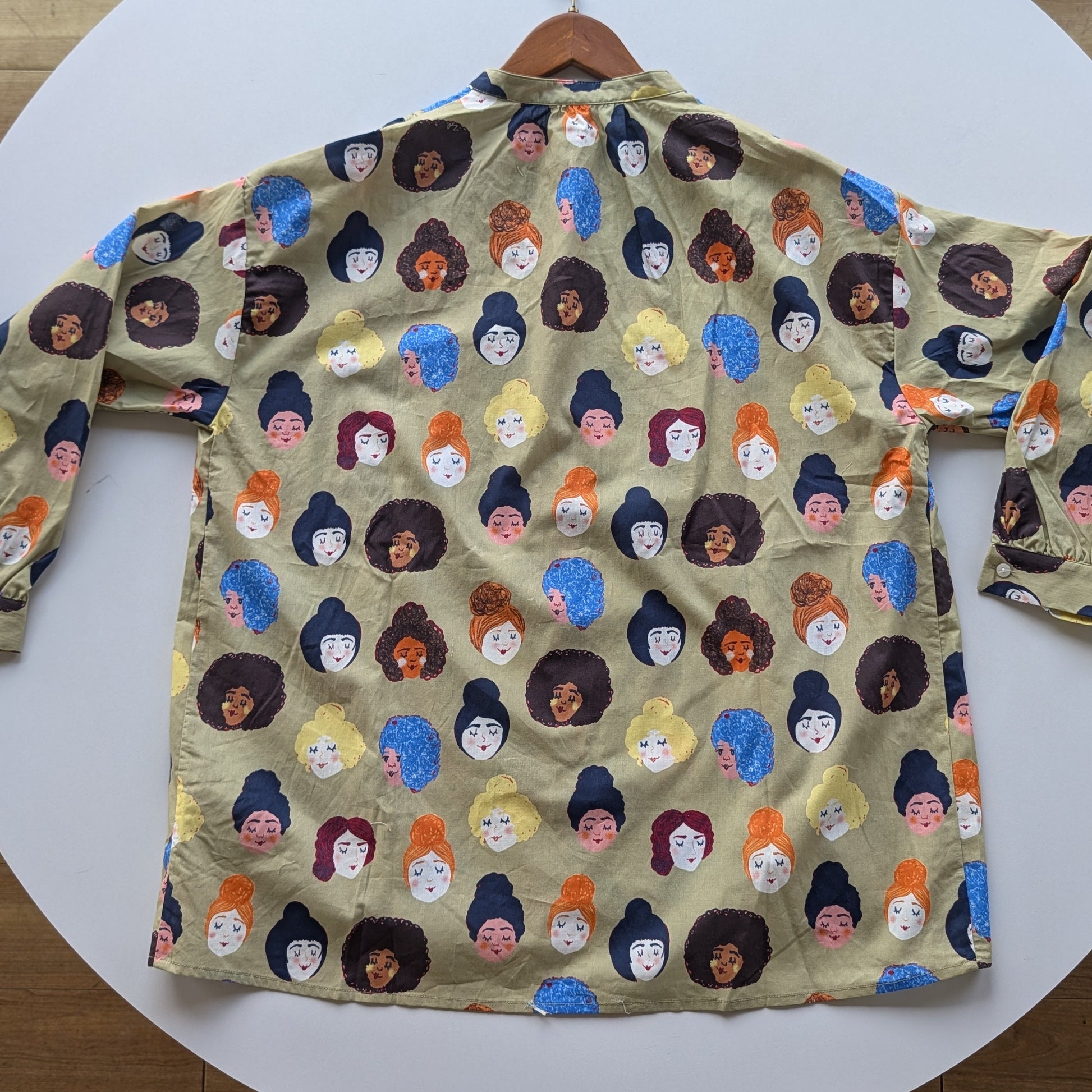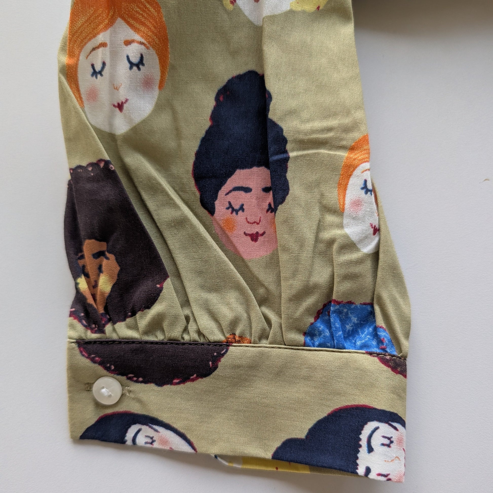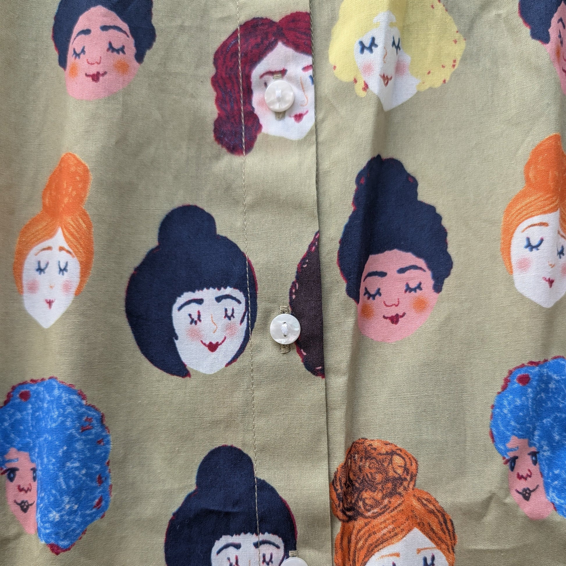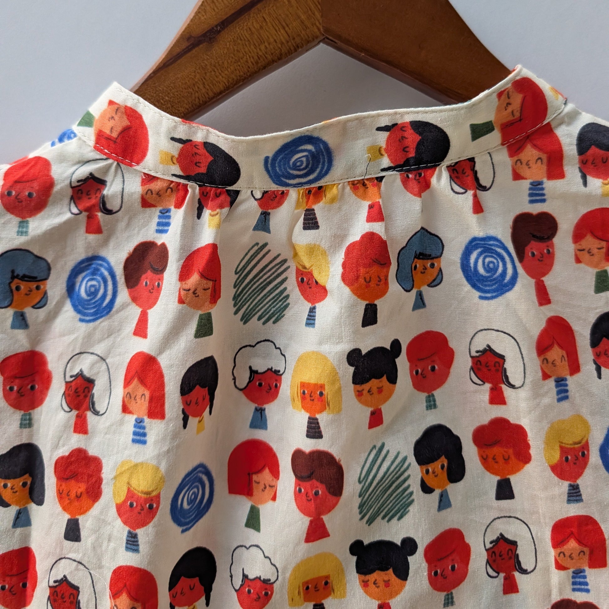 一見すると華やかな総柄、よく見ると愛らしい「顔」や「猫」たちが顔を出す、遊び心満載のブラウスが登場しました。肩に施したギャザーが、女性らしくふんわりとした立体感を演出。顔周りを華やかに見せてくれます。