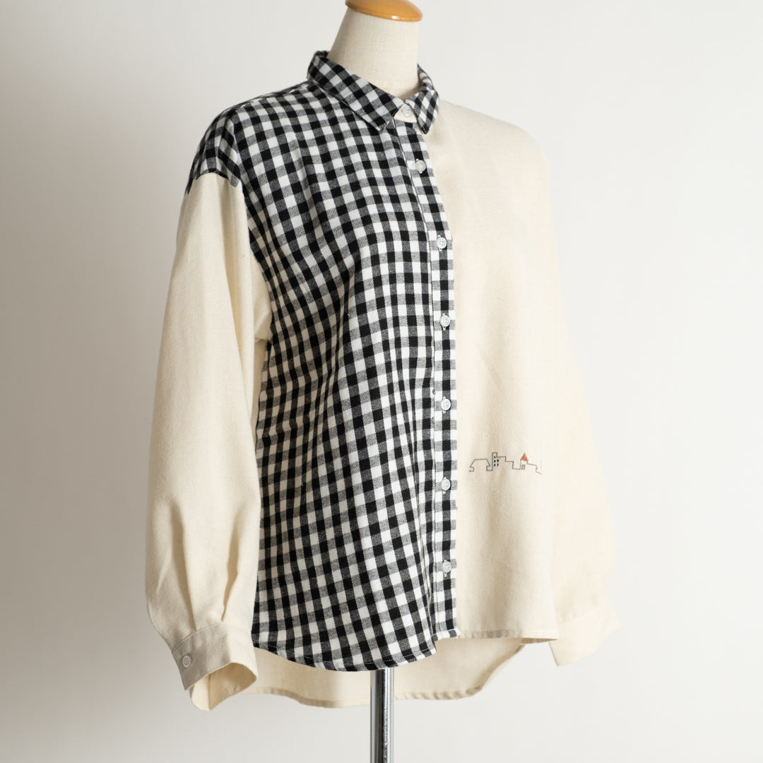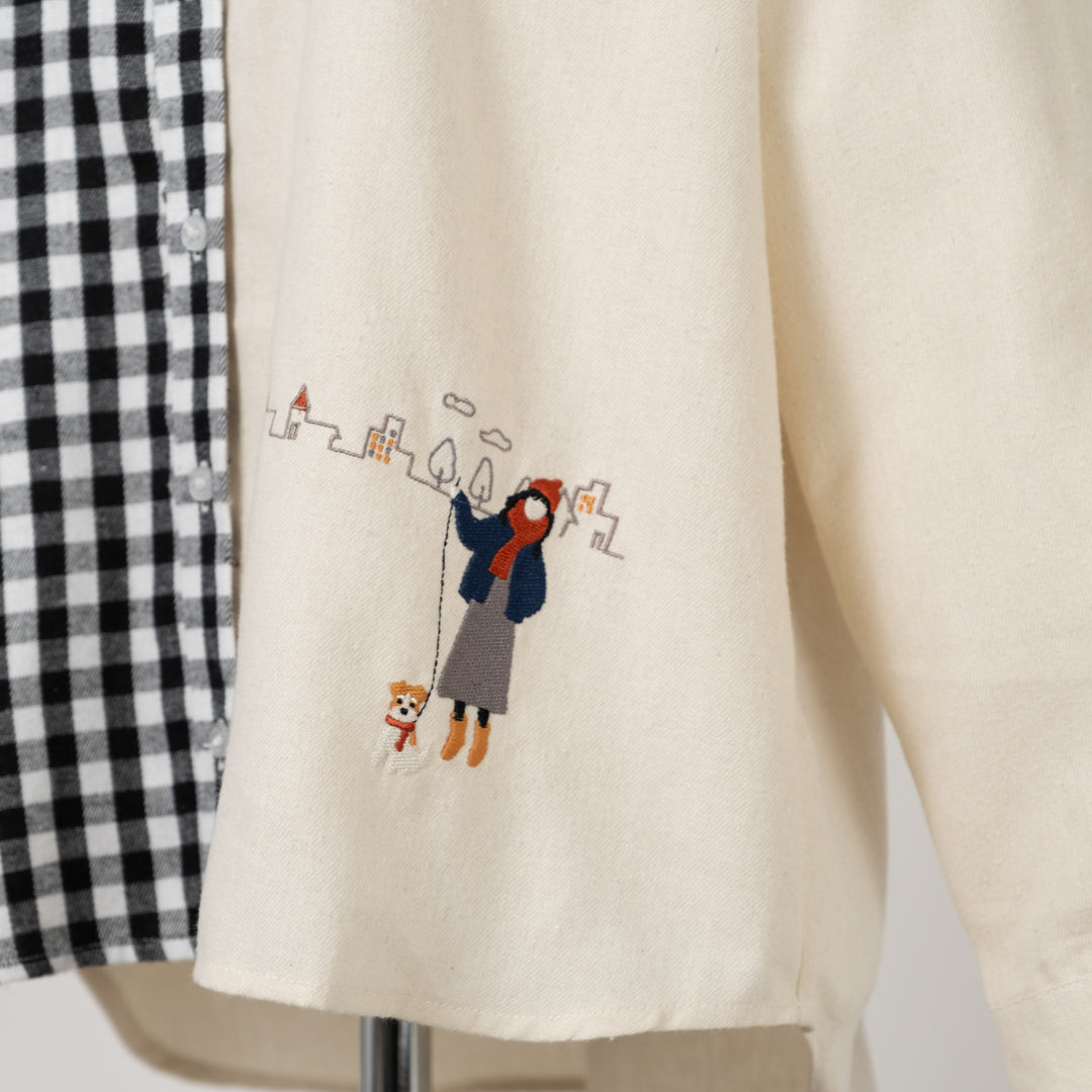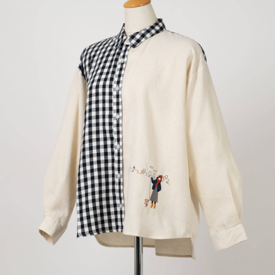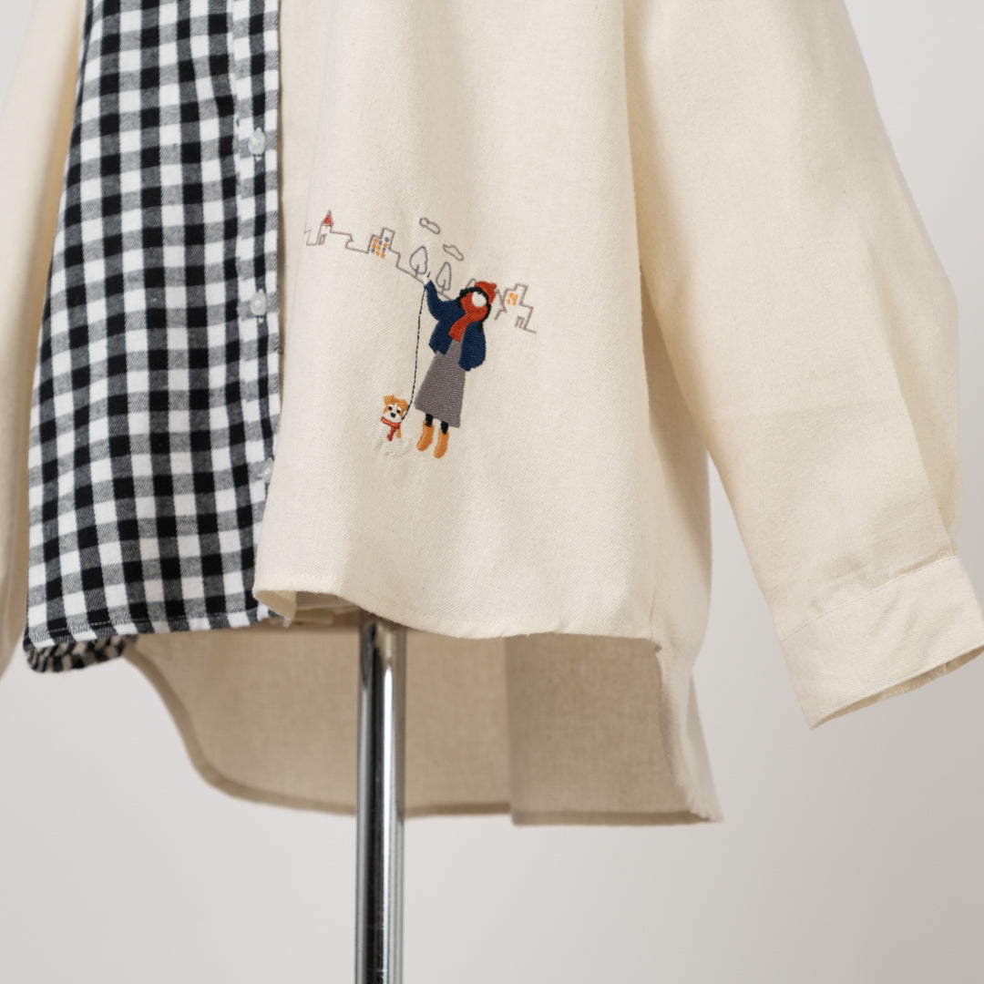 「お散歩」をテーマにした刺しゅうと、デザイン性の高い切替デザインが魅力のブラウスです。細やかな刺しゅうが、シンプルながらもさりげない個性を演出し、あなたの毎日に彩りを添えます。さらに、切替による立体的なシルエットが、着るだけで上品な印象を与えます。