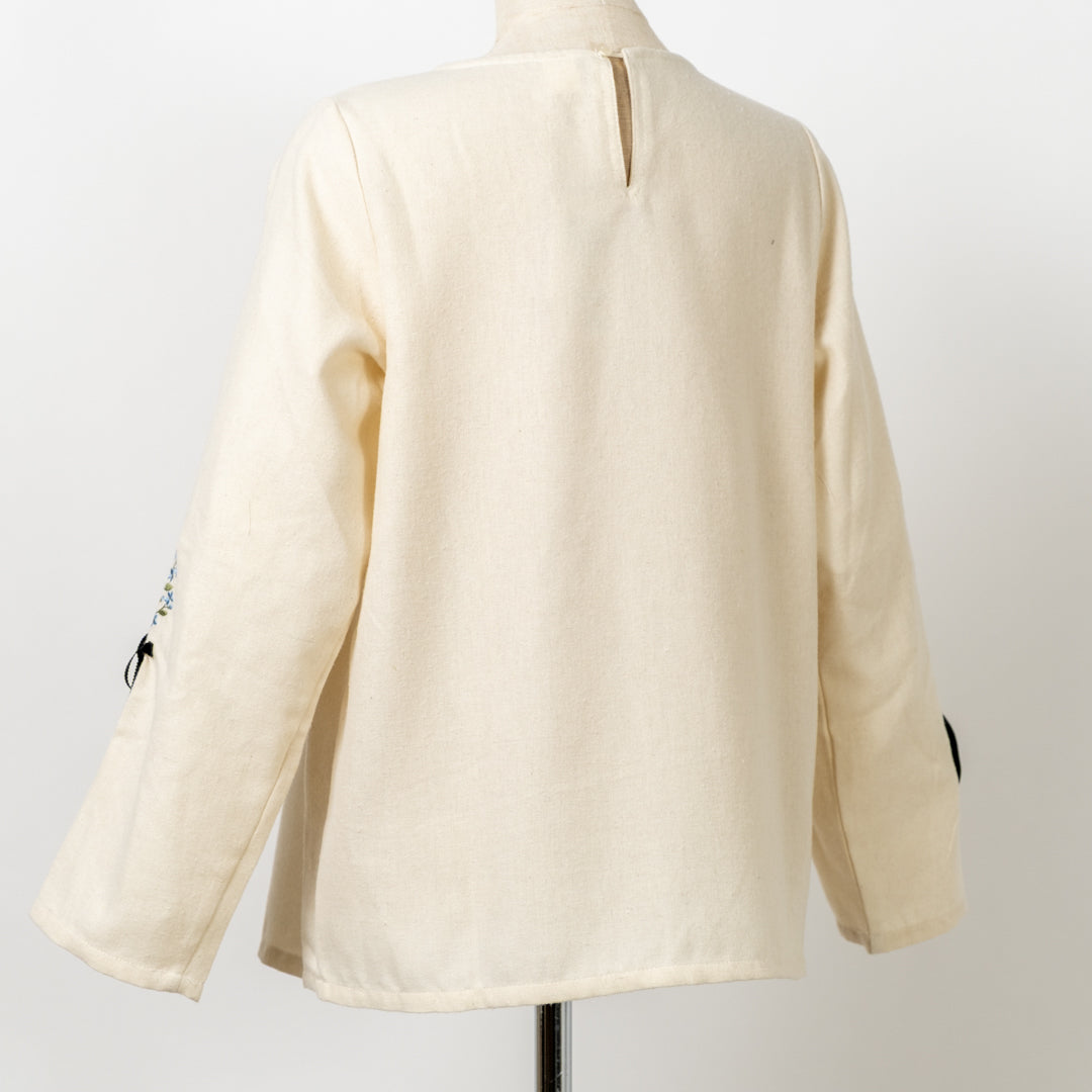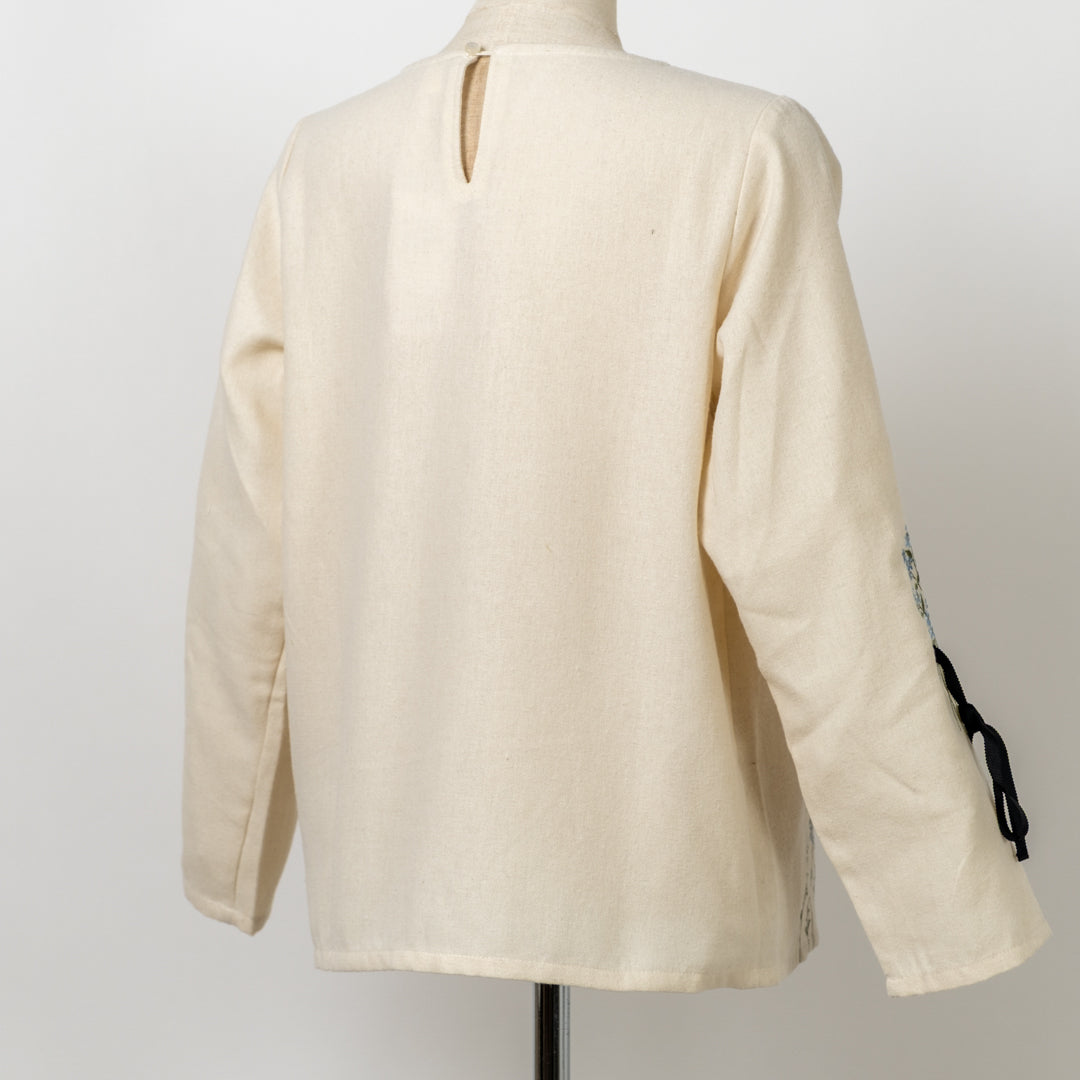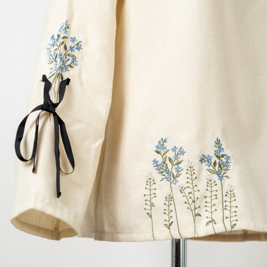 袖に施された繊細なブーケ刺しゅうが、圧倒的な存在感を放つブラウスです。上質な生地を使用し、刺しゅうによって描かれた花々は、まるで本物のブーケのような立体感と華やかさ。着るだけで、女性らしい洗練された印象と、ワンランク上のエレガントな雰囲気を与えます。