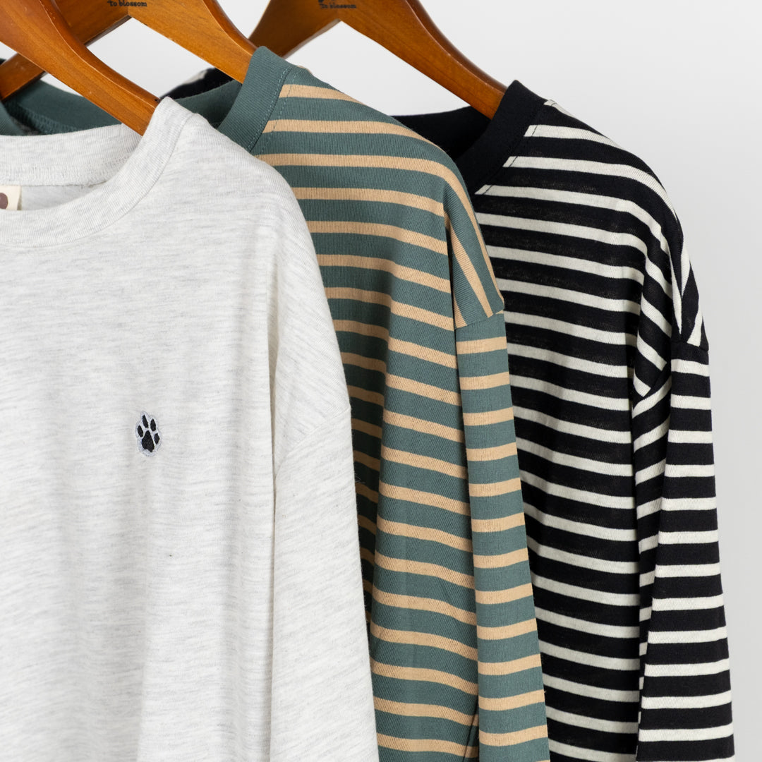肉球をあしらったさりげないワンポイントが魅力の七分袖Tシャツです。肌触りの良い素材を使用し、快適な着心地を実現。七分袖なので季節の変わり目にも適しており、カジュアルながら上品な印象を与えます。幅広いコーディネートに合わせやすく、デイリーに活躍する一枚です。