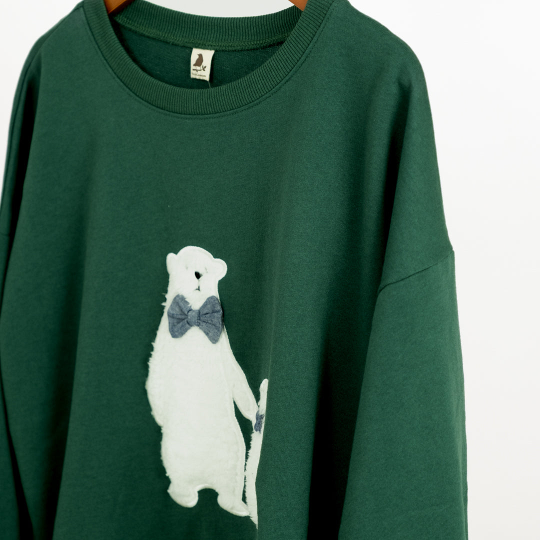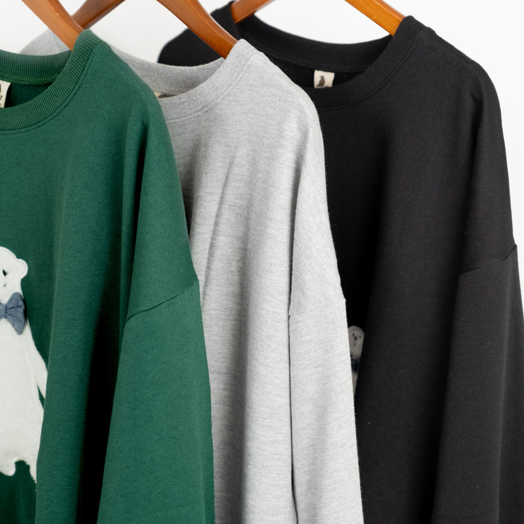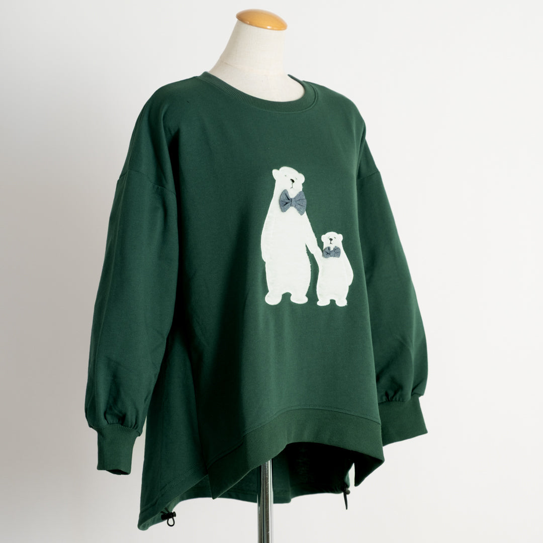 肌触り抜群の裏毛プルオーバー。ふっくら保温性で秋冬に最適。くまのアップリケが大人可愛い存在感を演出します。ゆったりシルエットで着回し力抜群。洗濯耐久性にも優れ、デイリーウェアにおすすめです。