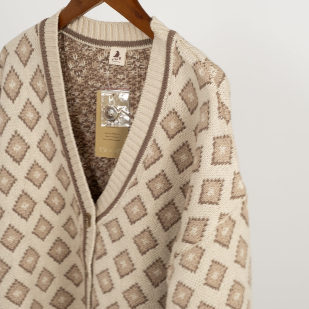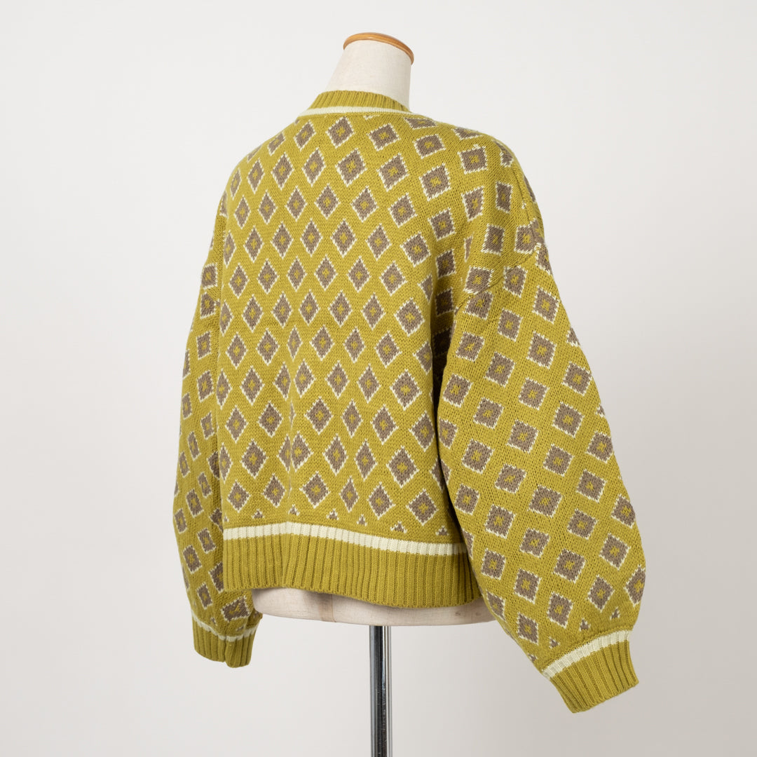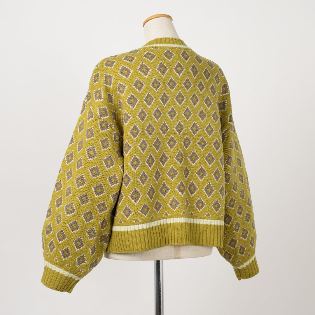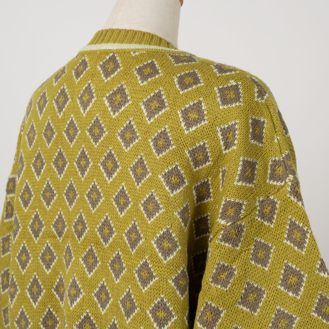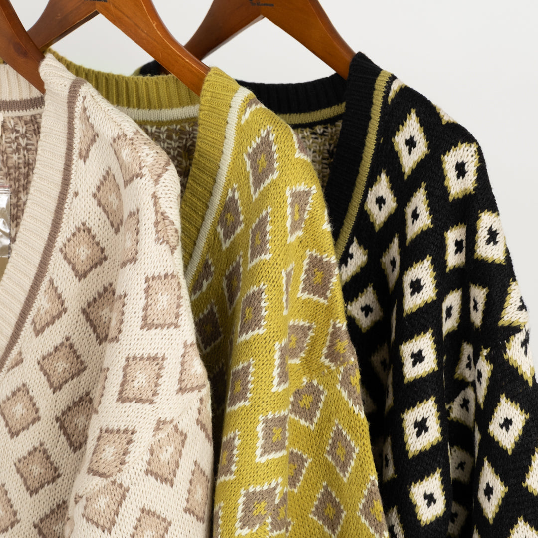 コモン柄を配した洗練ニットウェア。幾何学模様の立体テクスチャーがコーデに奥行きと表情を加えます。上品な色合いで大人カジュアルにも対応。レイヤリングにも活躍する、秋冬ワードローブの必須アイテム。