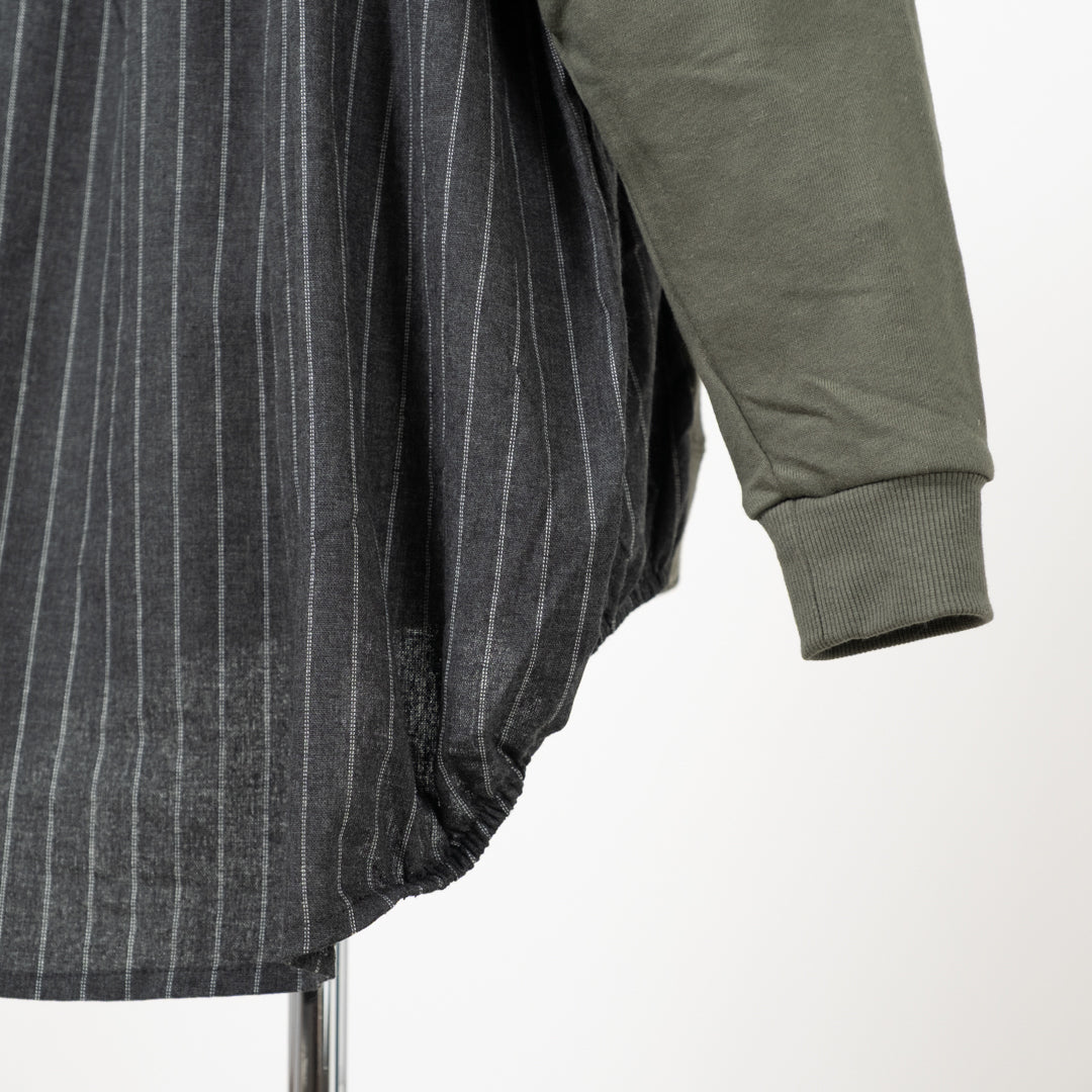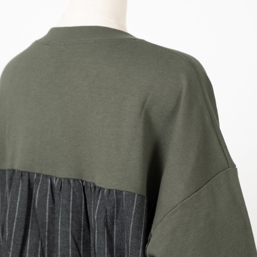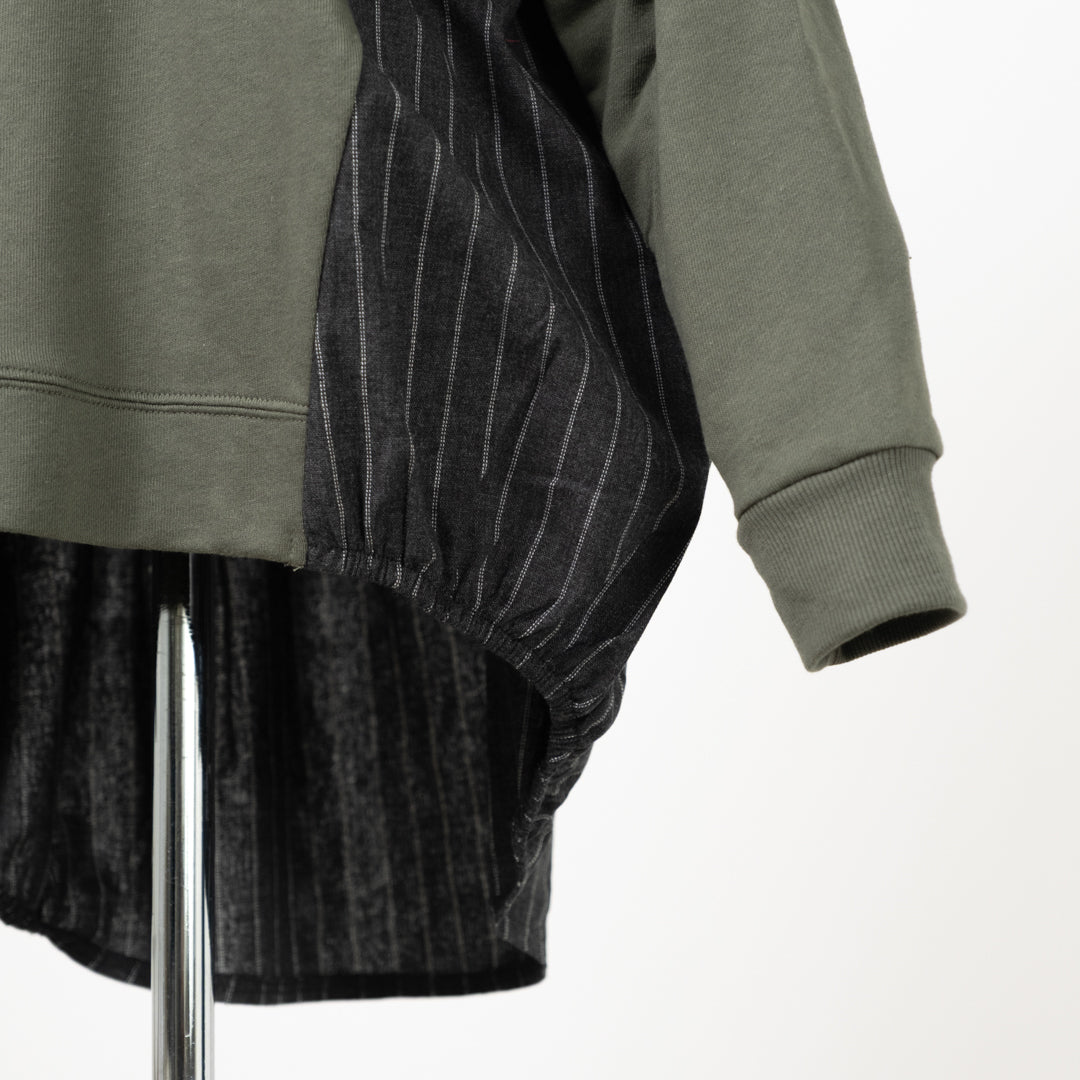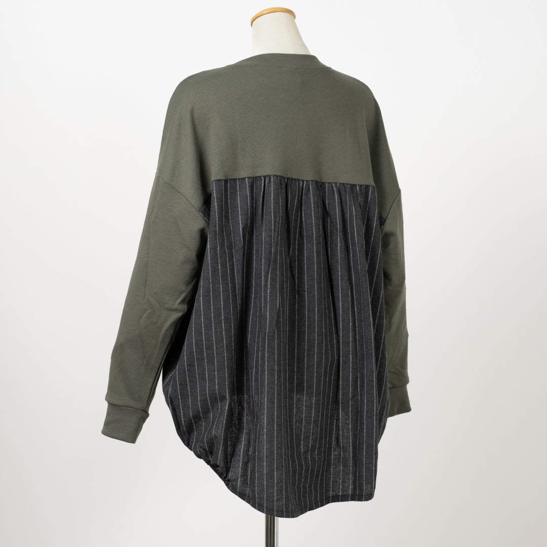 裏毛素材の切り替えデザインが魅力のコクーンチュニック。ゆったりシルエットで体型カバーしつつ、動きやすく快適な着心地です。トップスとしてもレイヤードにも活躍し、カジュアルからきれいめまで幅広い着回しに対応。洗練されたデザインで、季節の変わり目に重宝する大人カジュアルな一着です。