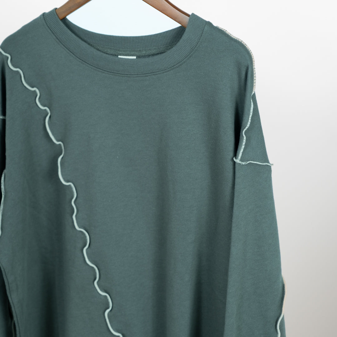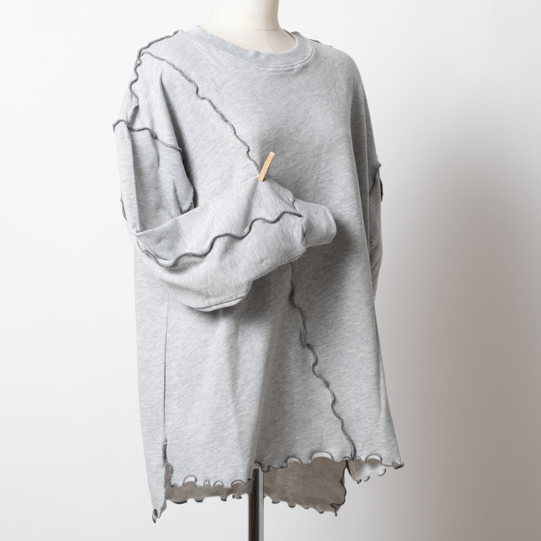 柔らかな裏毛スウェットに、繊細なメロー仕上げを施したプルオーバー。肌触りの良さと快適な着心地を追求しました。シンプルながらもメロー加工がさりげないアクセントとなり、大人カジュアルをきれいめに格上げします。動きやすさと高品質を兼ね備え、デイリーに活躍する裏毛トップスとして着回し力抜群の一着です。