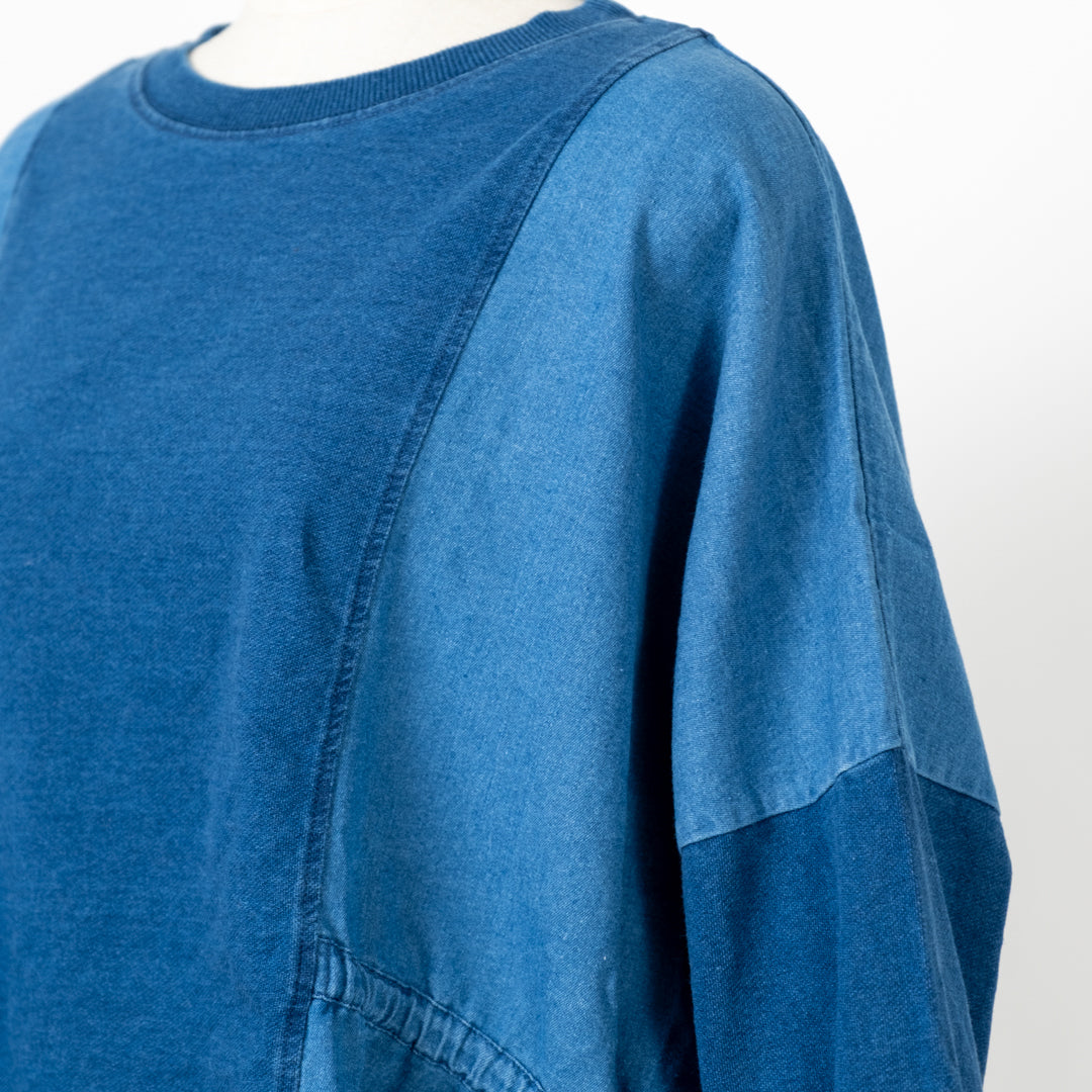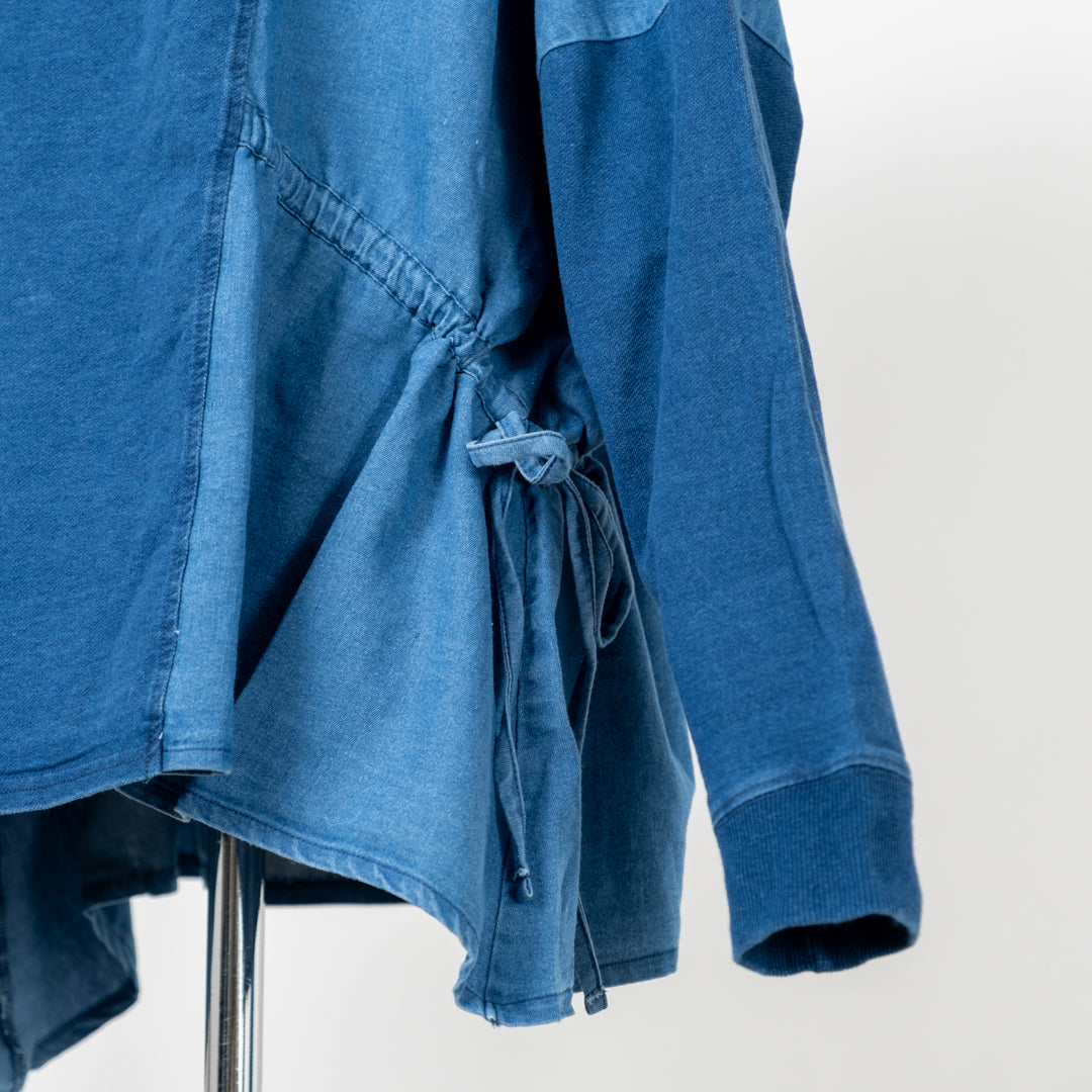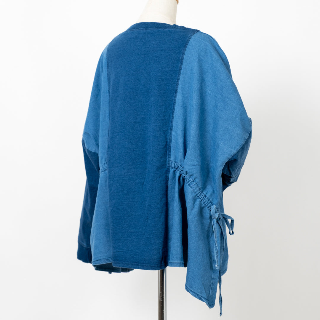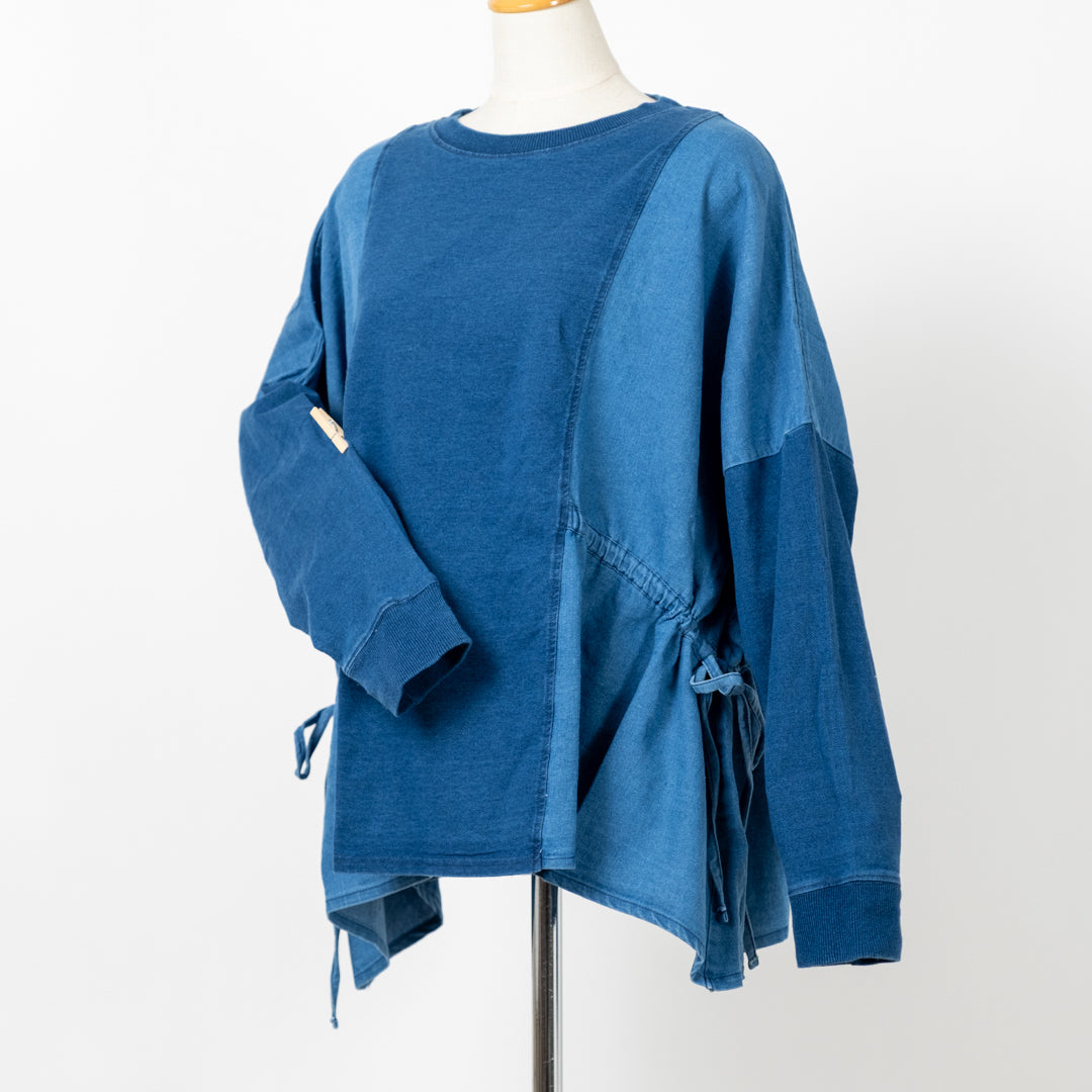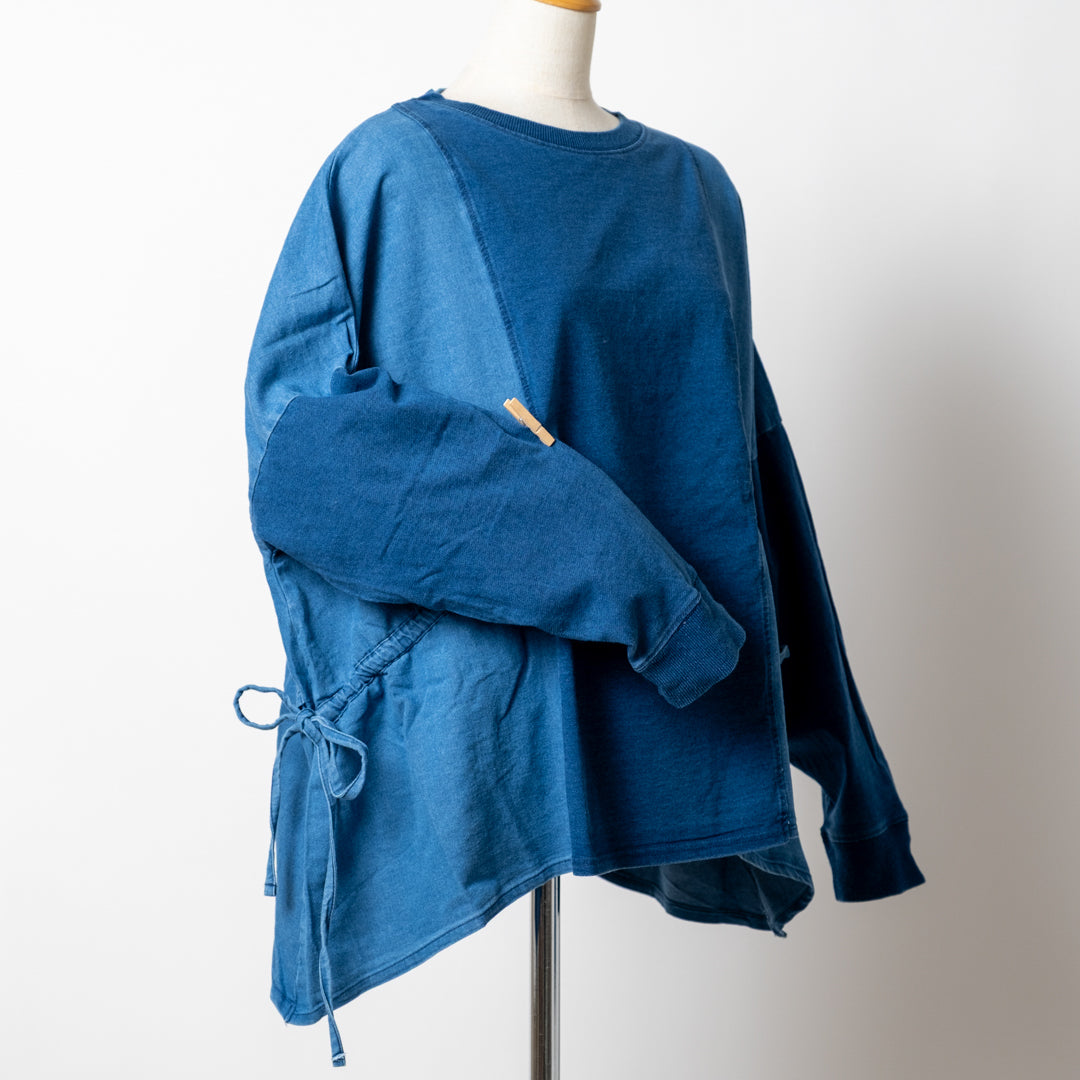 インディゴ染めの裏毛素材を使用した、大人カジュアルを格上げするリボン付きプルオーバー。着るほどに風合いが増すインディゴの深みと、柔らかな裏毛スウェットの快適な着心地を両立しました。サイドのリボンがシンプルながら洗練されたアクセントとなり、一枚でサマになるデザインです。優れた保温性で暖かく、デイリーユースからカジュアルなお出かけまで幅広く着回し可能。質の高さにこだわった、エキスパートおすすめの裏毛トップスです。