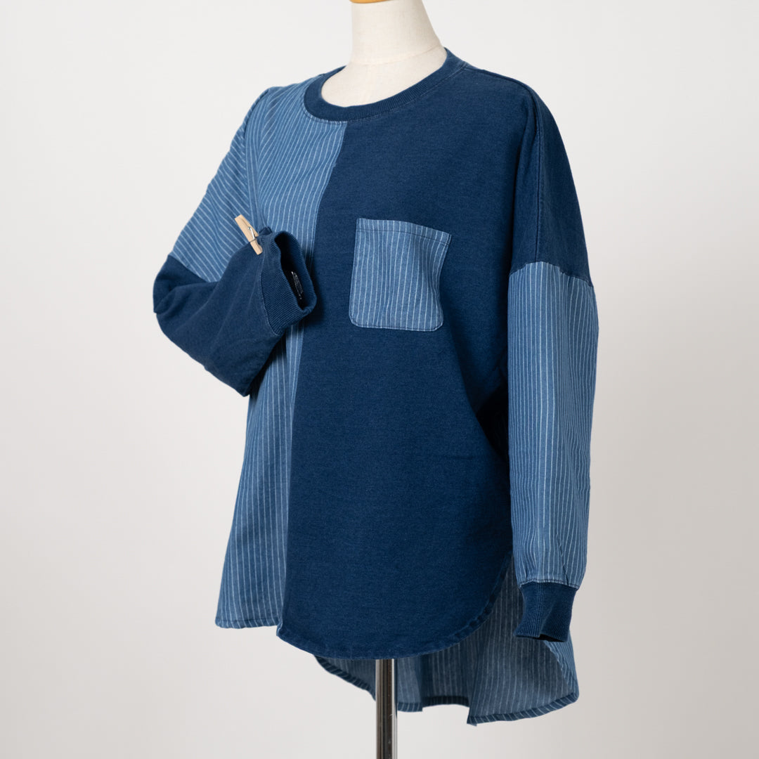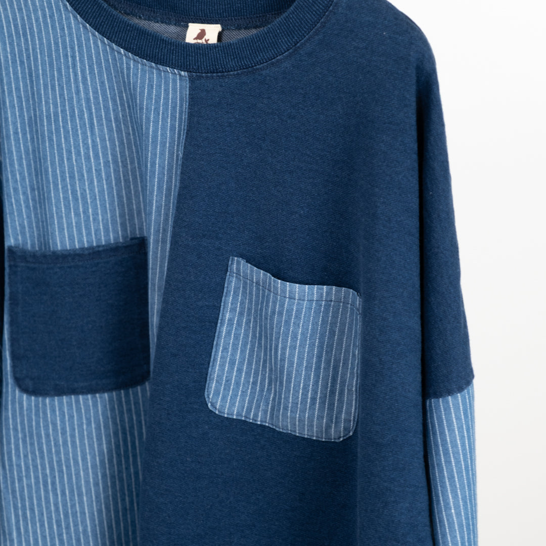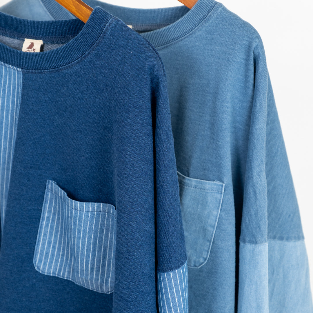 インディゴ染めの裏毛プルオーバーは、快適な着心地と上質な風合いが魅力。実用的なパッチポケット付きで、カジュアルにもスマートカジュアルにも対応します。リラックスシルエットで動きやすく、通年で活躍するベーシックなデザイン。ワードローブに欠かせない一着です。