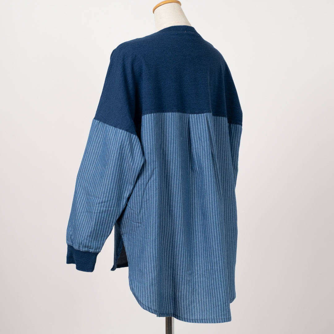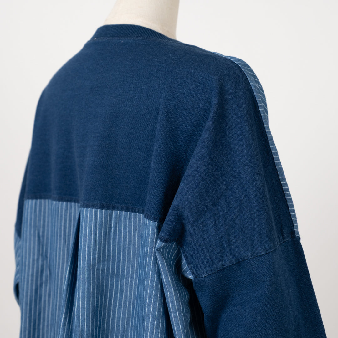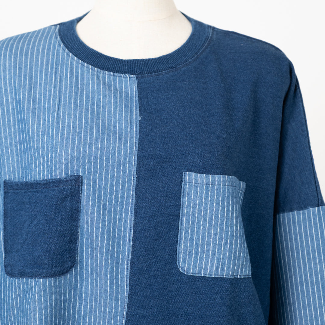 インディゴ染めの裏毛プルオーバーは、快適な着心地と上質な風合いが魅力。実用的なパッチポケット付きで、カジュアルにもスマートカジュアルにも対応します。リラックスシルエットで動きやすく、通年で活躍するベーシックなデザイン。ワードローブに欠かせない一着です。