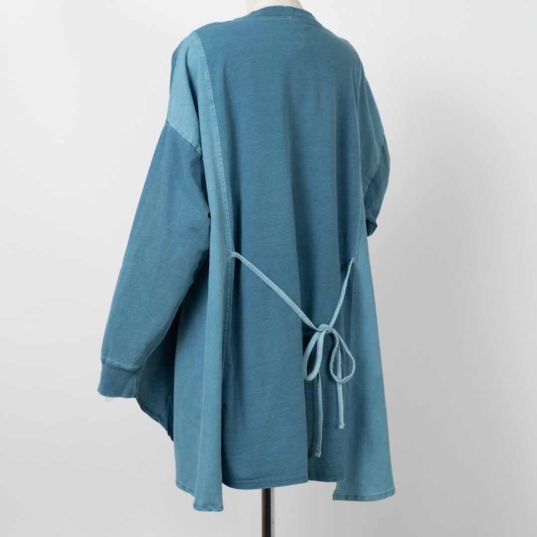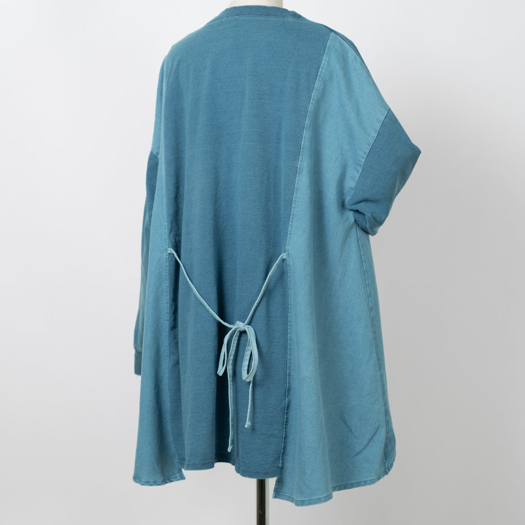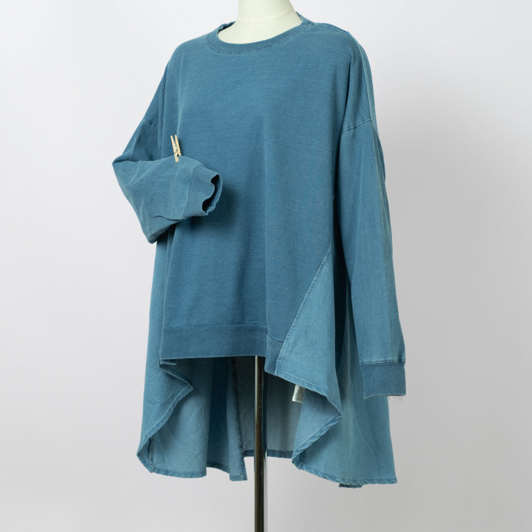 柔らかく肌触りの良い生地が、一日中快適な着心地を提供します。カジュアルなスウェット素材ながら、バックスタイルに施されたリボンがさりげない女性らしさと上品なアクセントをプラス。デニム風の深みあるインディゴの色合いと、シンプルながらも個性的なデザインが、大人カジュアルなコーディネートを格上げします。