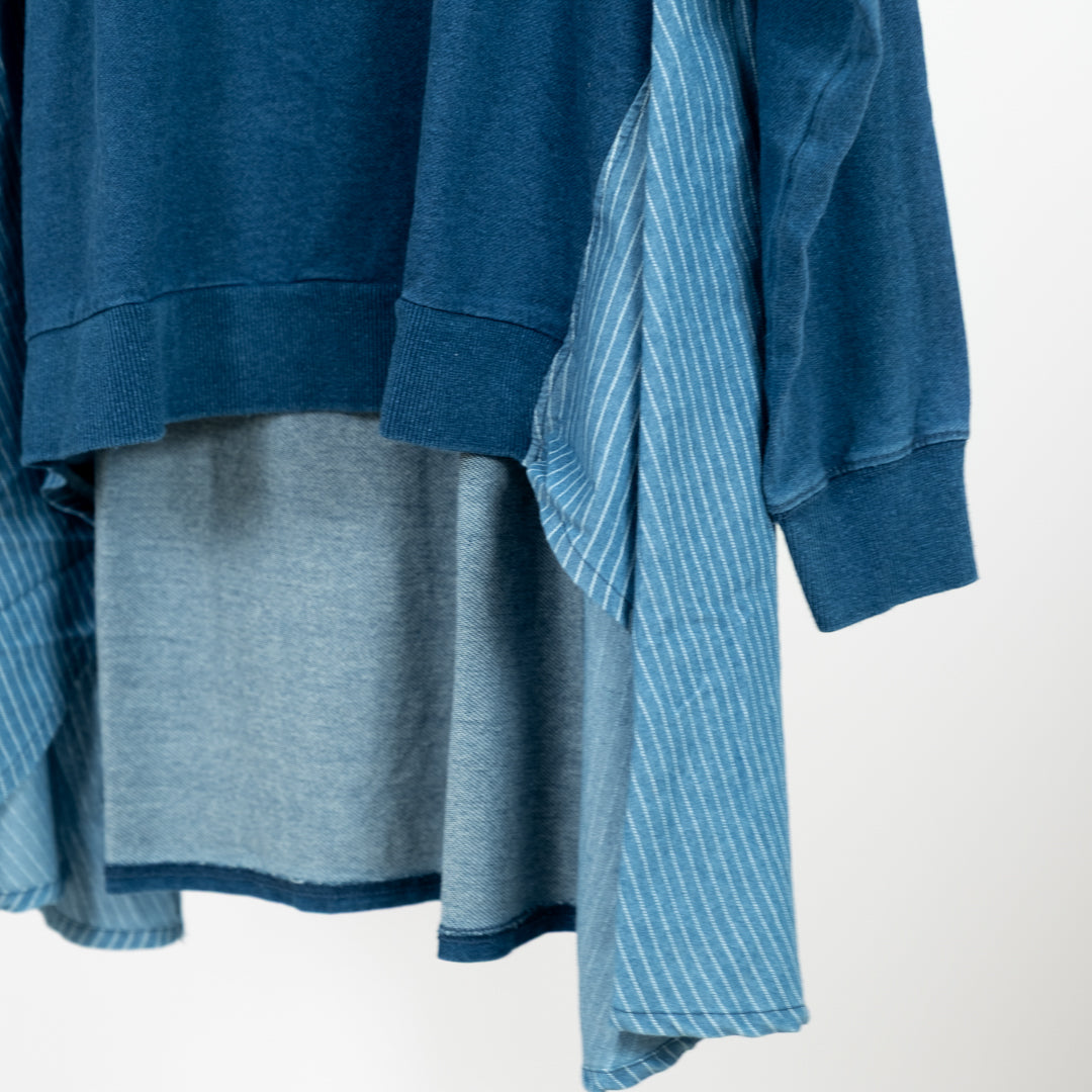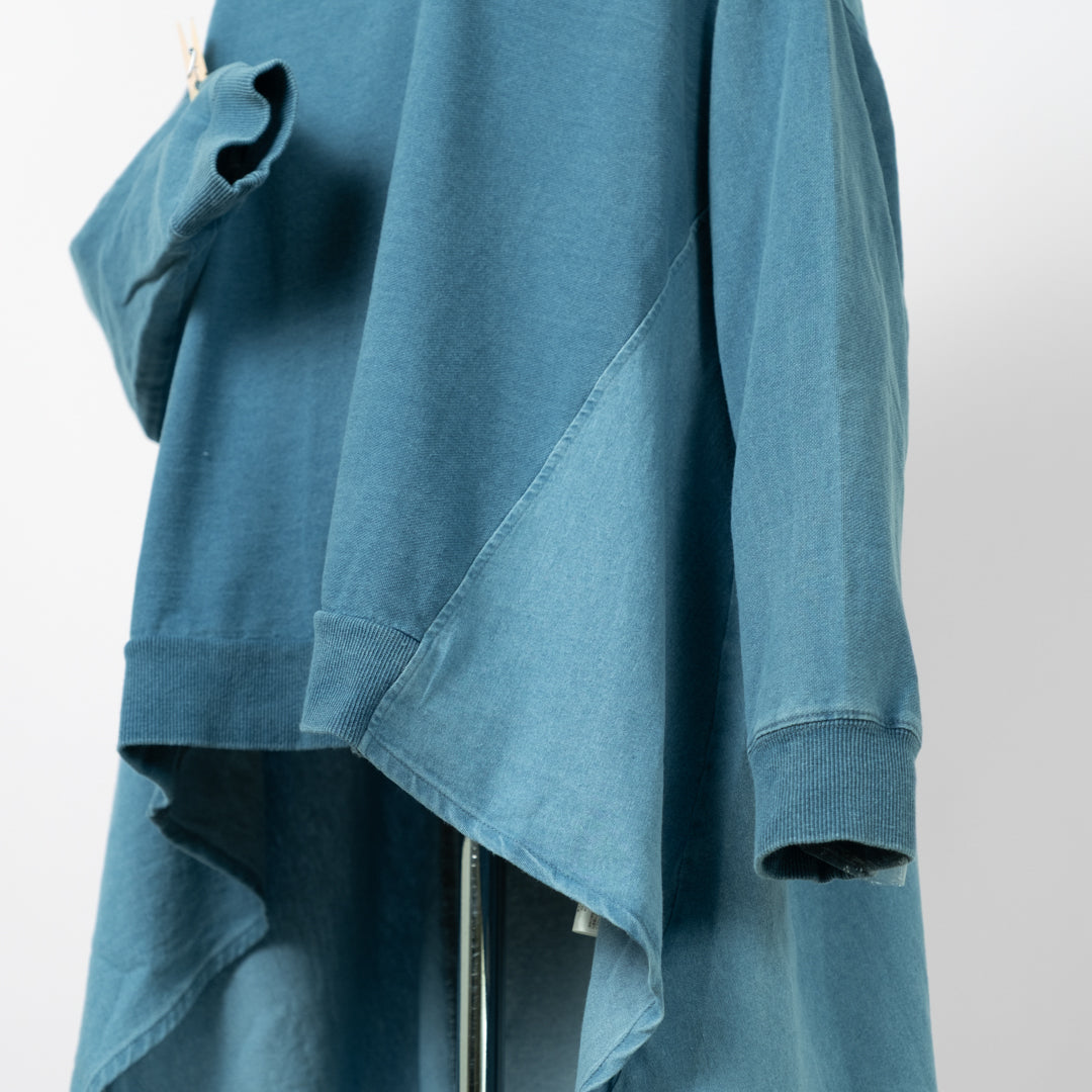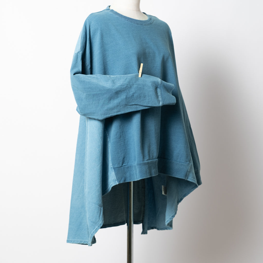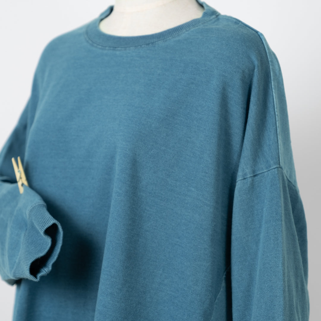 柔らかく肌触りの良い生地が、一日中快適な着心地を提供します。カジュアルなスウェット素材ながら、バックスタイルに施されたリボンがさりげない女性らしさと上品なアクセントをプラス。デニム風の深みあるインディゴの色合いと、シンプルながらも個性的なデザインが、大人カジュアルなコーディネートを格上げします。
