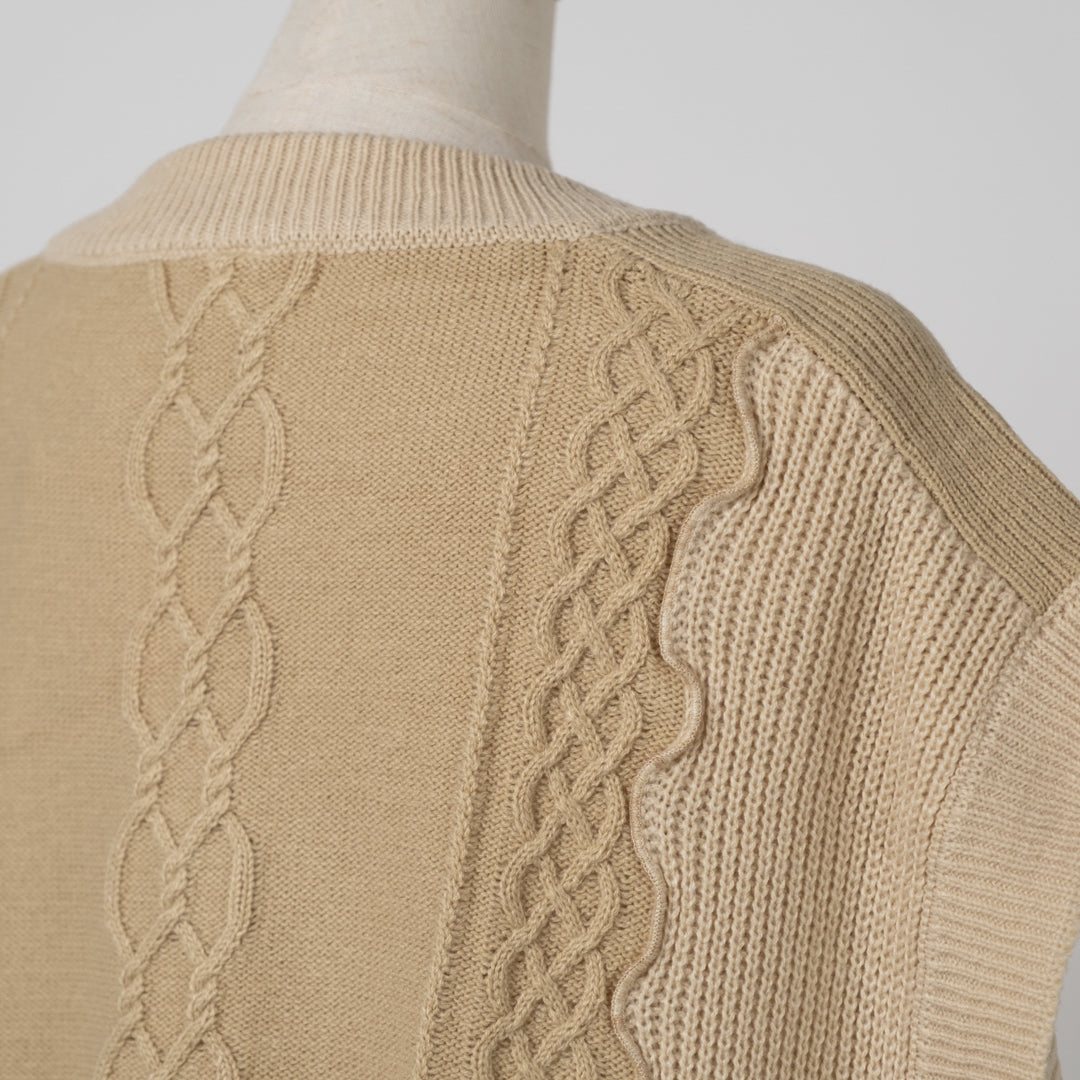 柔らかいエッジで洗練された印象に。レイヤリングしやすく、季節を問わずシャツやロンTとの組み合わせで活躍します。上質な素材と丁寧な仕立てが、大人っぽいワンランク上のスタイリングを叶える万能アイテム。
