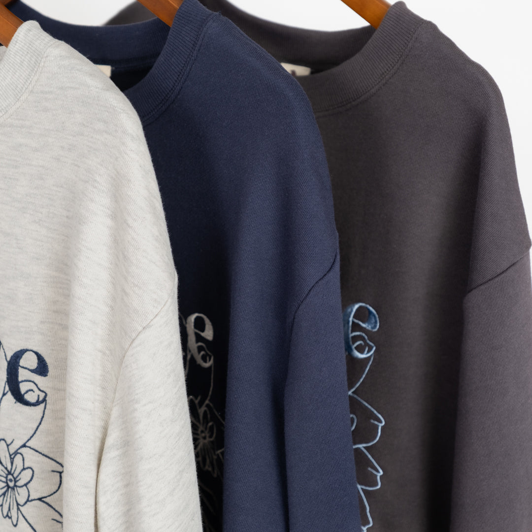 上質な裏毛素材を使用した、肌触り抜群のプルオーバー。フラワーの刺繡デザインが大人可愛い女性らしい印象を演出します。柔らかな着心地で、日常のカジュアルスタイルから外出まで幅広く活躍。素材の質感と優雅なデザインが調和した、大人のための洗練された一枚です。
