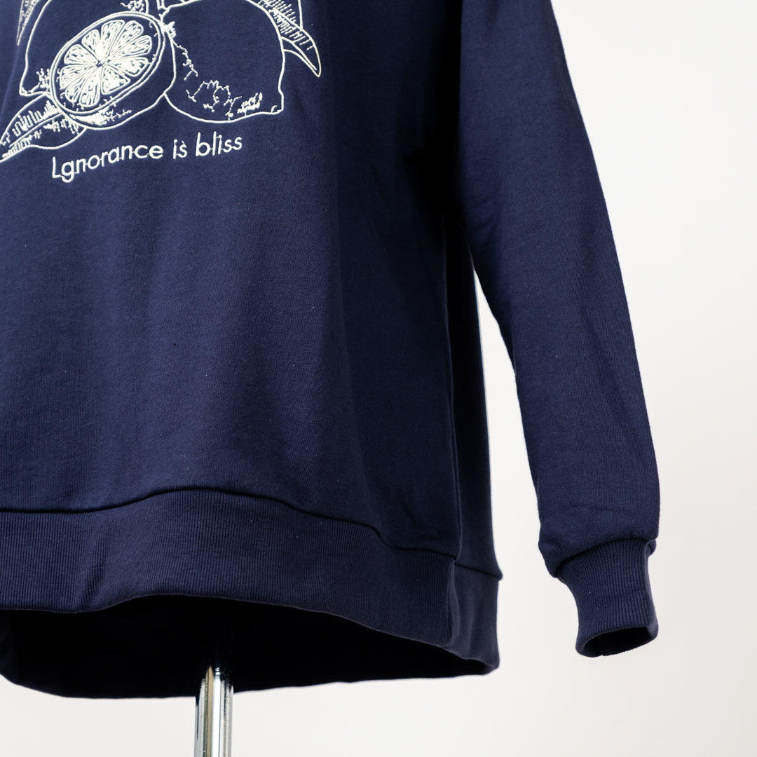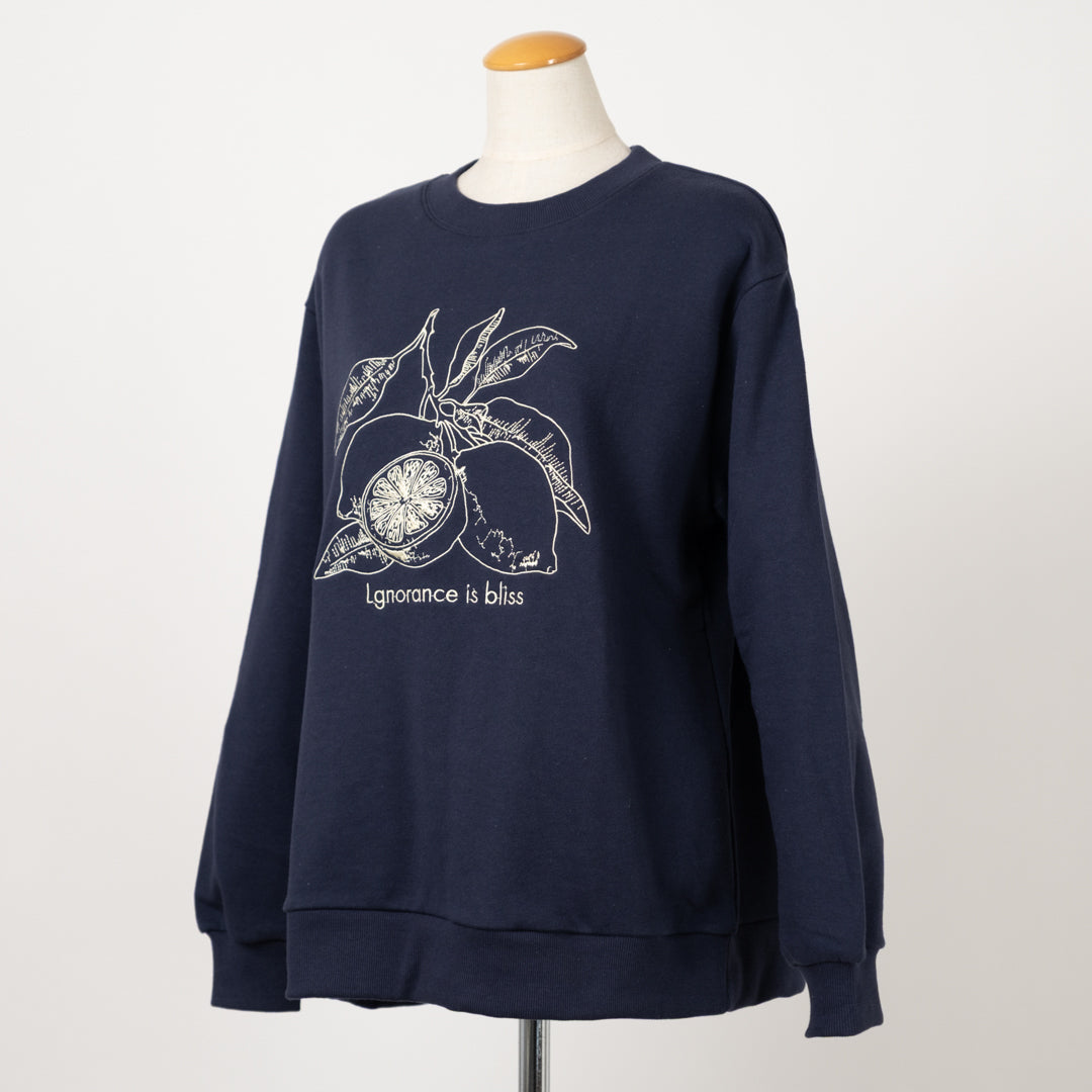 上質な裏毛素材を使用した、肌触り抜群のプルオーバー。果実の刺繡デザインが大人可愛い女性らしい印象を演出します。柔らかな着心地で、日常のカジュアルスタイルから外出まで幅広く活躍。素材の質感と優雅なデザインが調和した、大人のための洗練された一枚です。