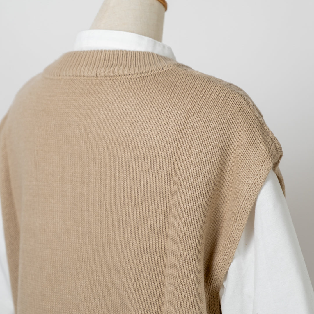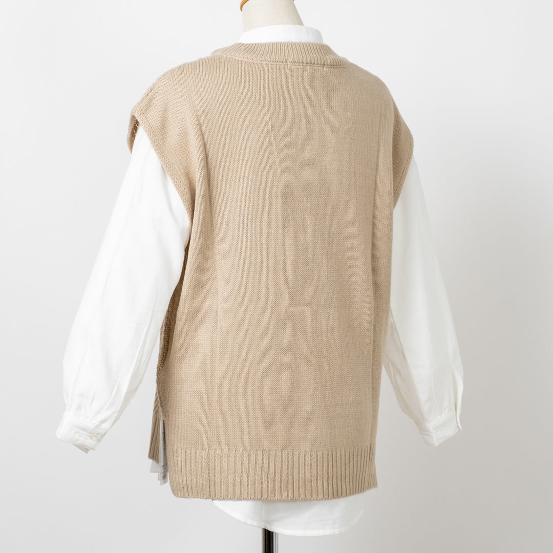 程よい厚みのニットベストとベーシックなシャツがセットになったこのアイテムは、一着で上品かつ快適なレイヤードスタイルを完成させます。バランスの良いシルエットは、重ね着をしても着ぶくれせず、視覚的に縦のラインを強調しスタイルアップを実現。着るだけで洗練された印象を与えます。