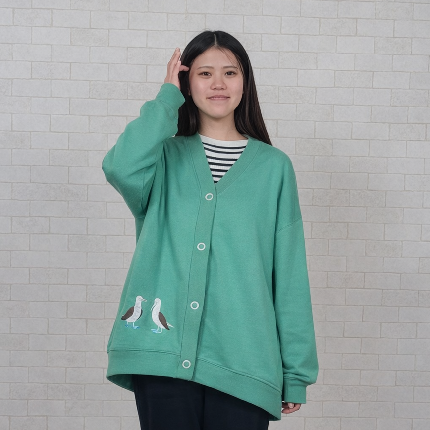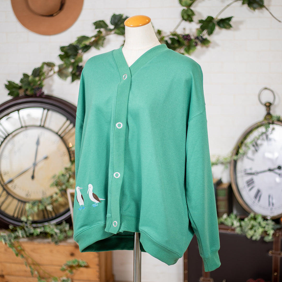アオアシカツオドリが刺繡されている遊び心あふれるカーディガンです。カジュアルコーデにはもちろん、ナチュラルコーデにも合う優れものです。コーデを考えるのが楽しみになりますね。アオアシカツオドリと一緒にお出かけしましょ♪