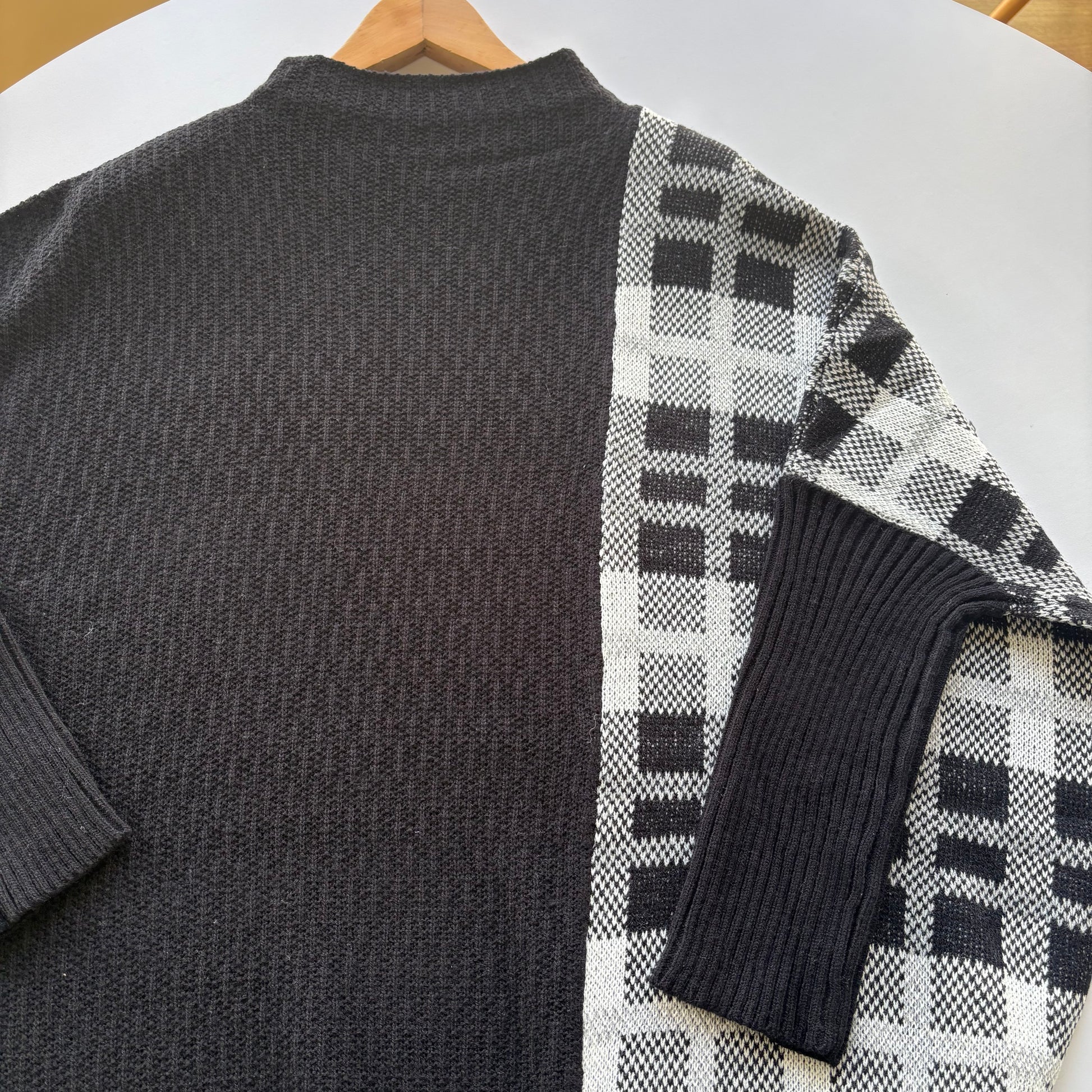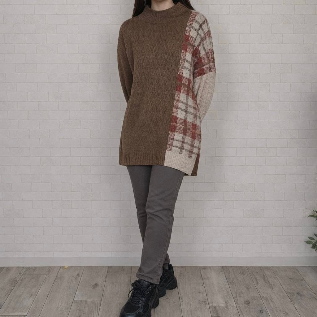 洗練されたボトルネックと配色チェック柄が目を引くチュニック。体のラインをさりげなくカバーしながら、スタイルアップを叶える一枚です。シンプルなボトムスとの相性も抜群で、カジュアルから大人っぽいコーデまで、場面を選ばず活躍。毎日のワードローブに欠かせない、上質な着心地と洗練された表情を兼ね備えています。