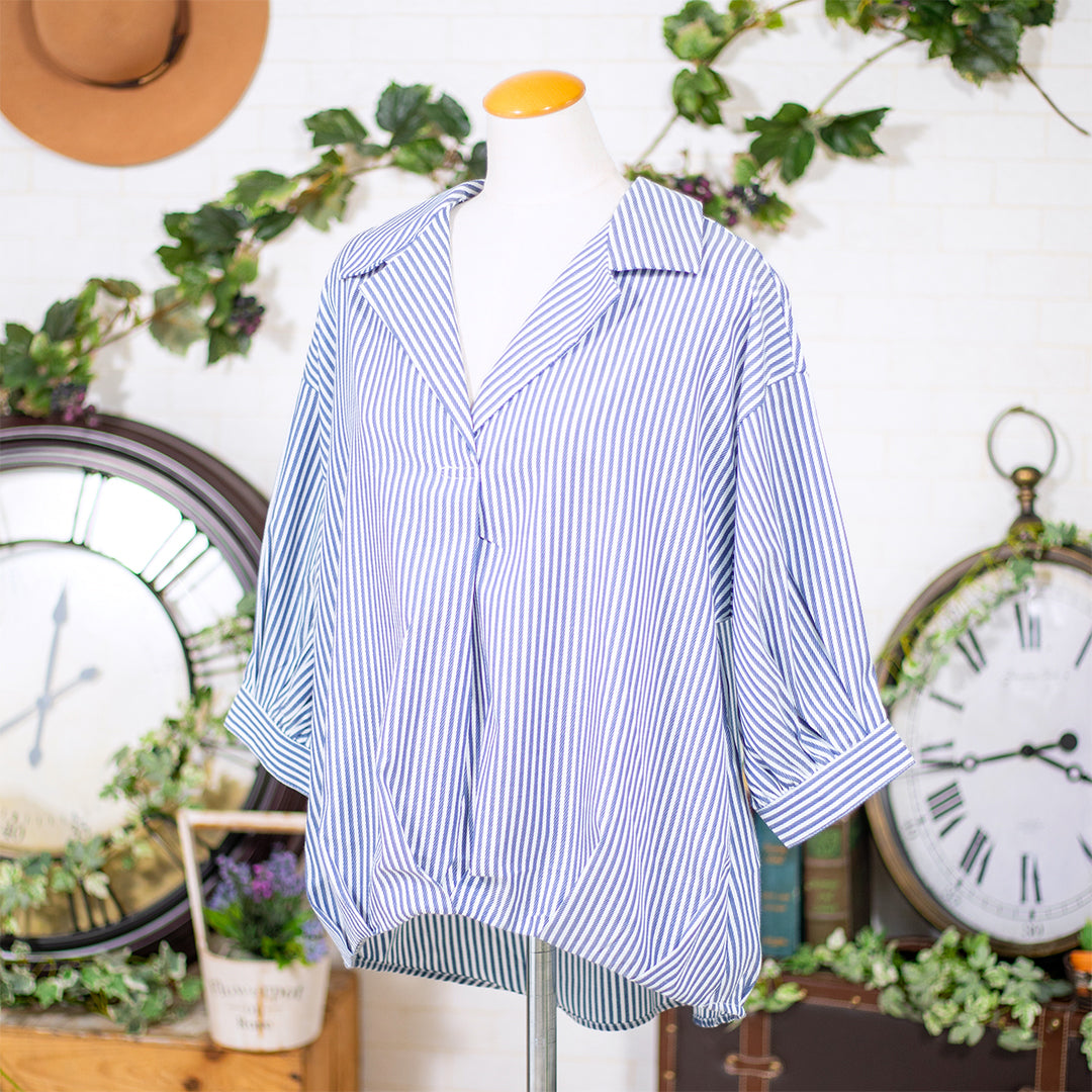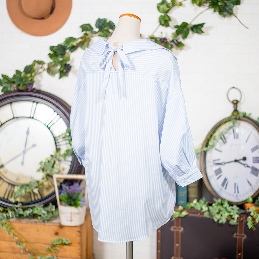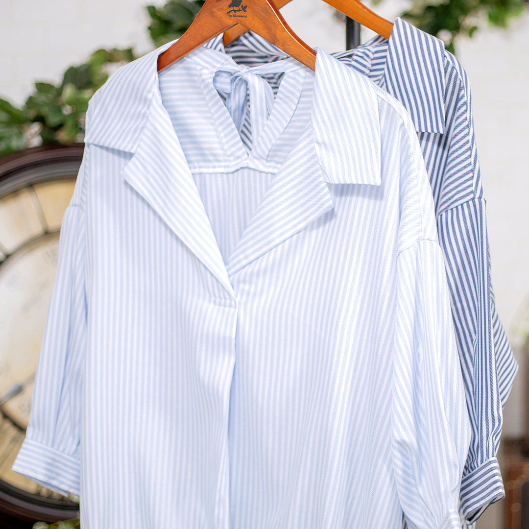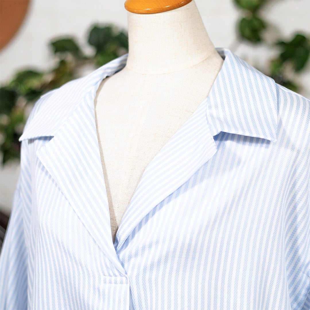 開襟デザインとの相乗効果で、顔周りもパッと明るく見せてくれます。
